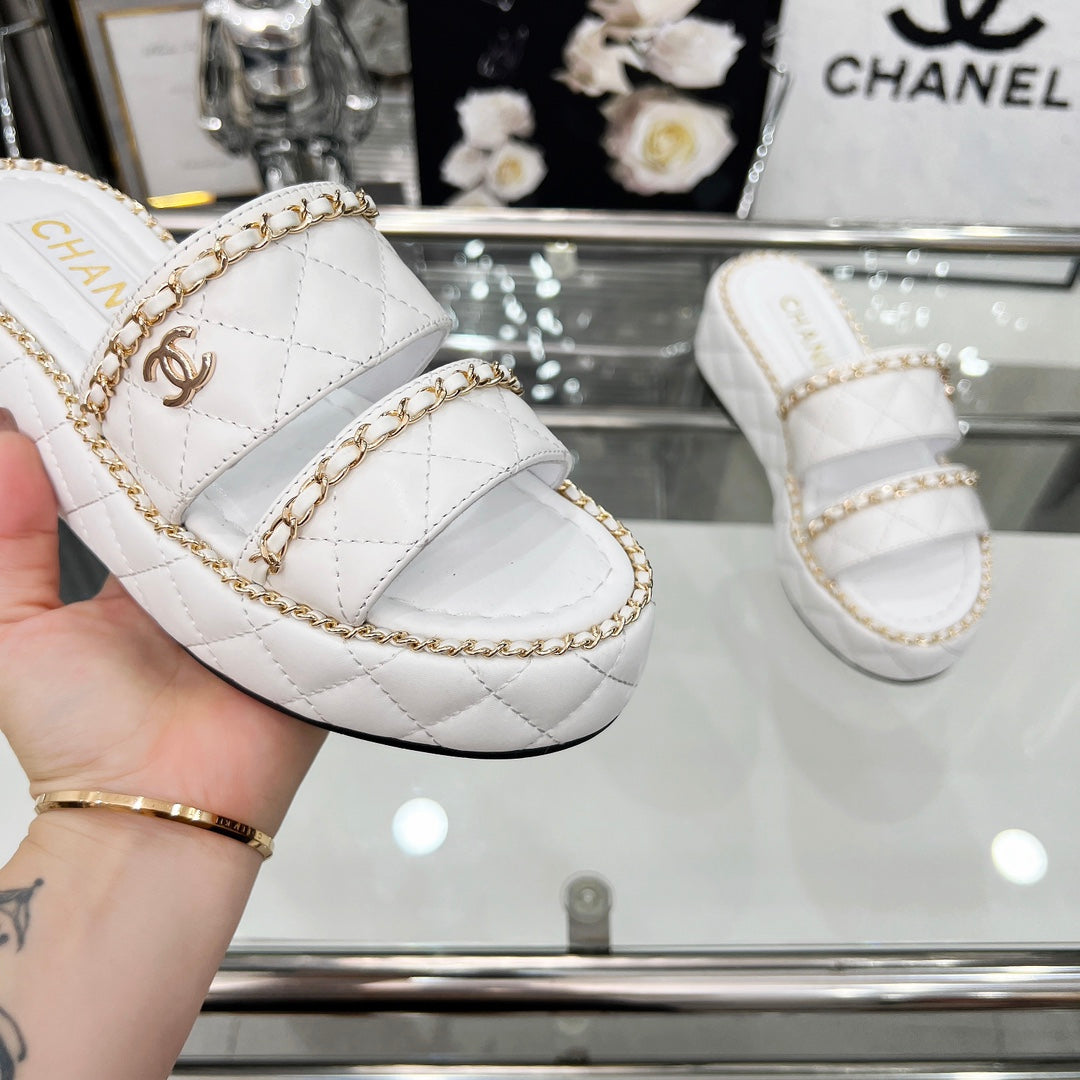 CC 25 Slide Leather Chain 6cm White Lambskin 338659