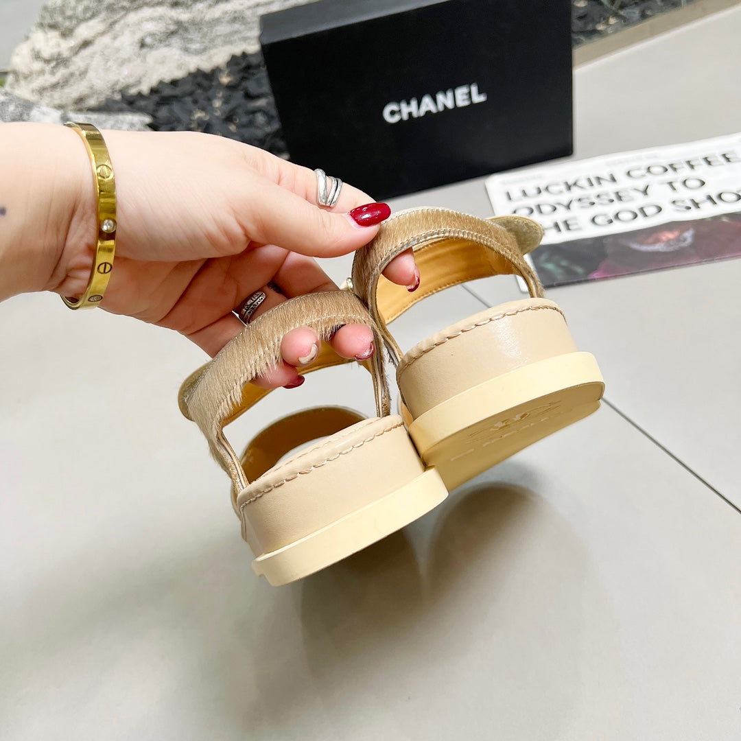 CC 25A Sandals Beige Horse Fur Leather 338605