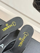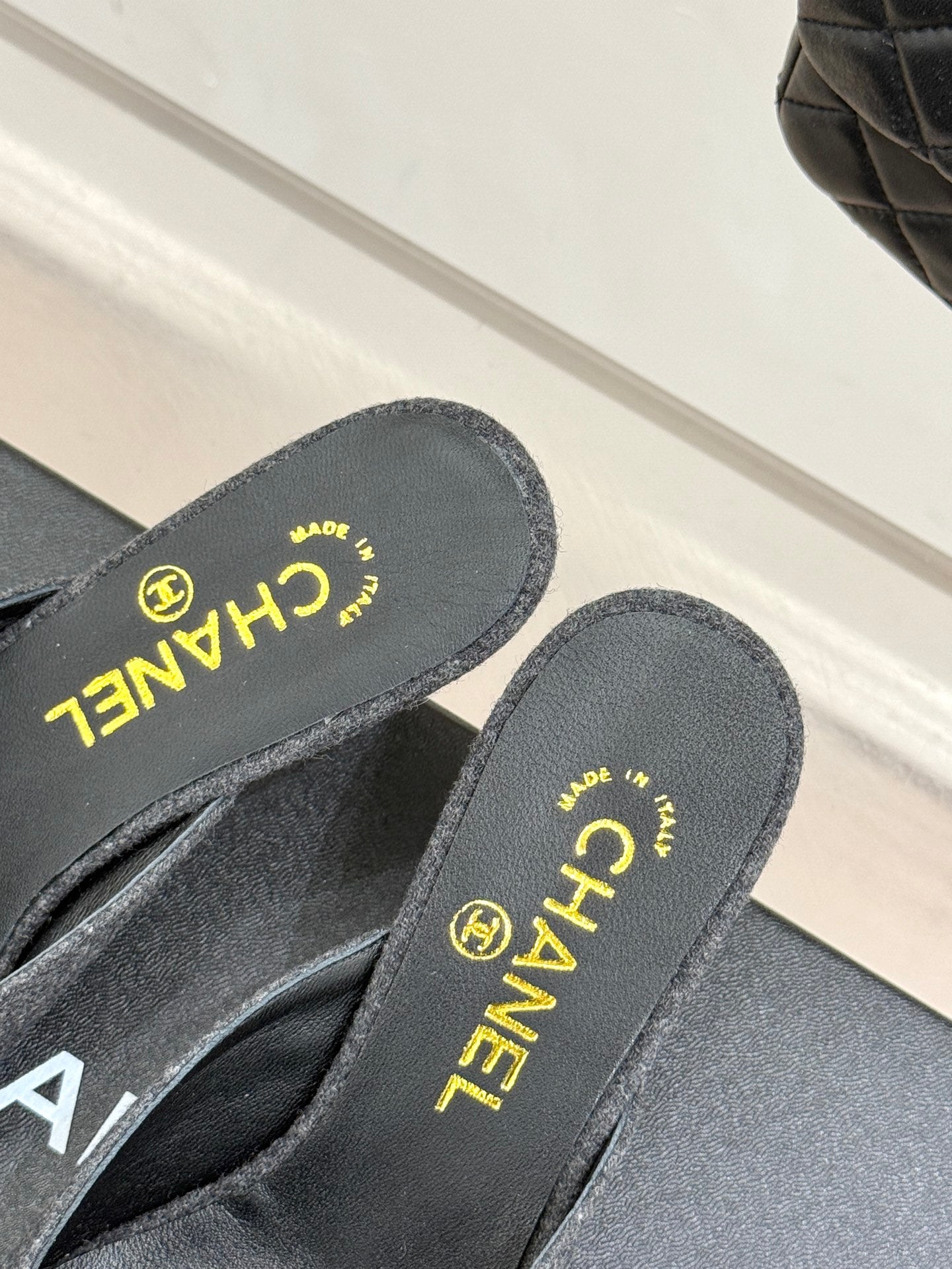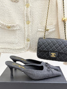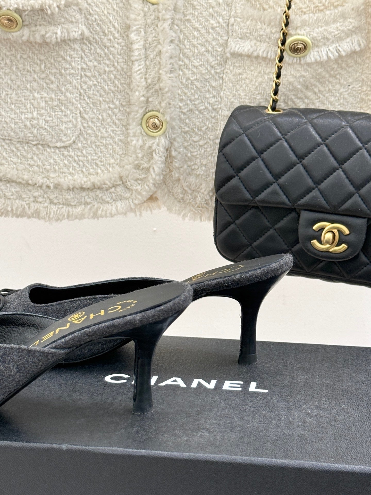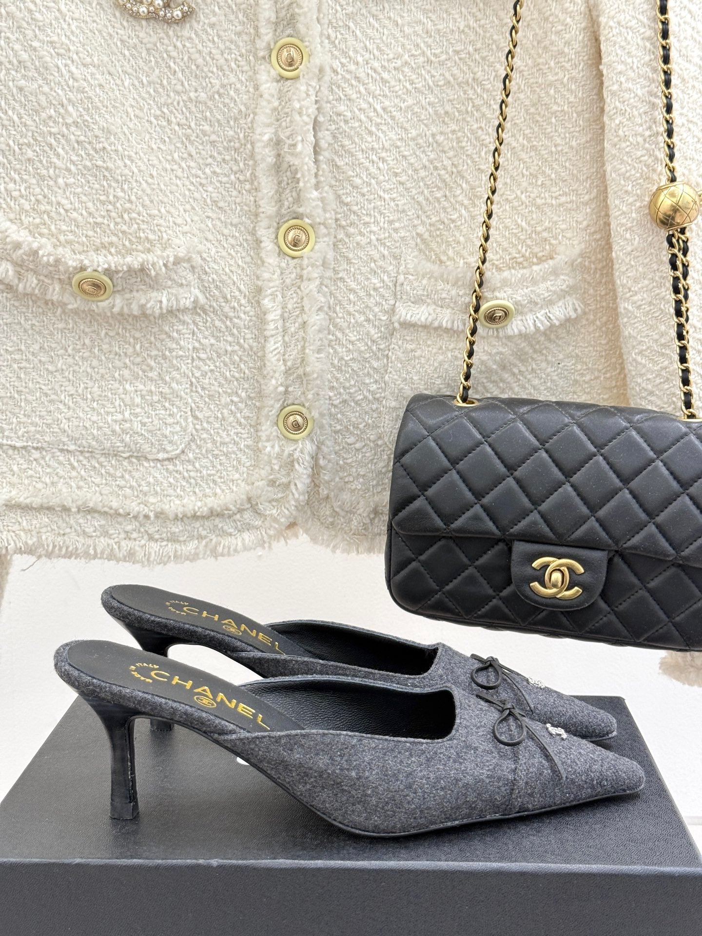 CC 25C Bowknot Pointed High Heel Half Slippers 60mm Black Linen 265662