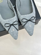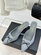 CC 25C Bowknot Pointed High Heel Half Slippers 60mm Grey Linen 265661