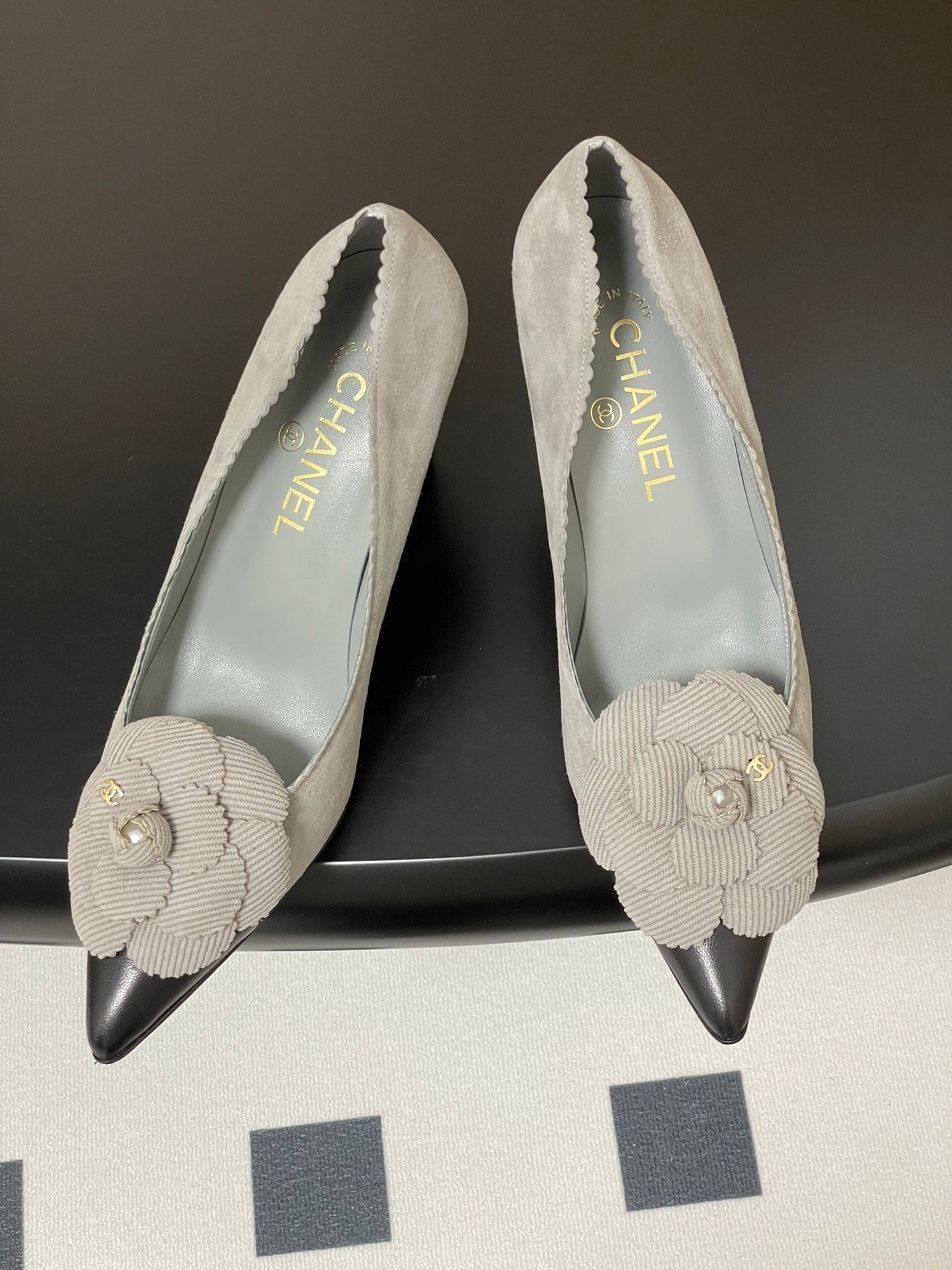 CC 25C Classic Camellia Pointed High Heels Pump 85mm Grey Suede 247615