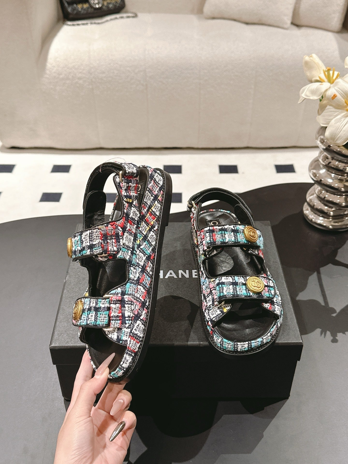 cc 25p dad sandal black colorful tweed 237566
