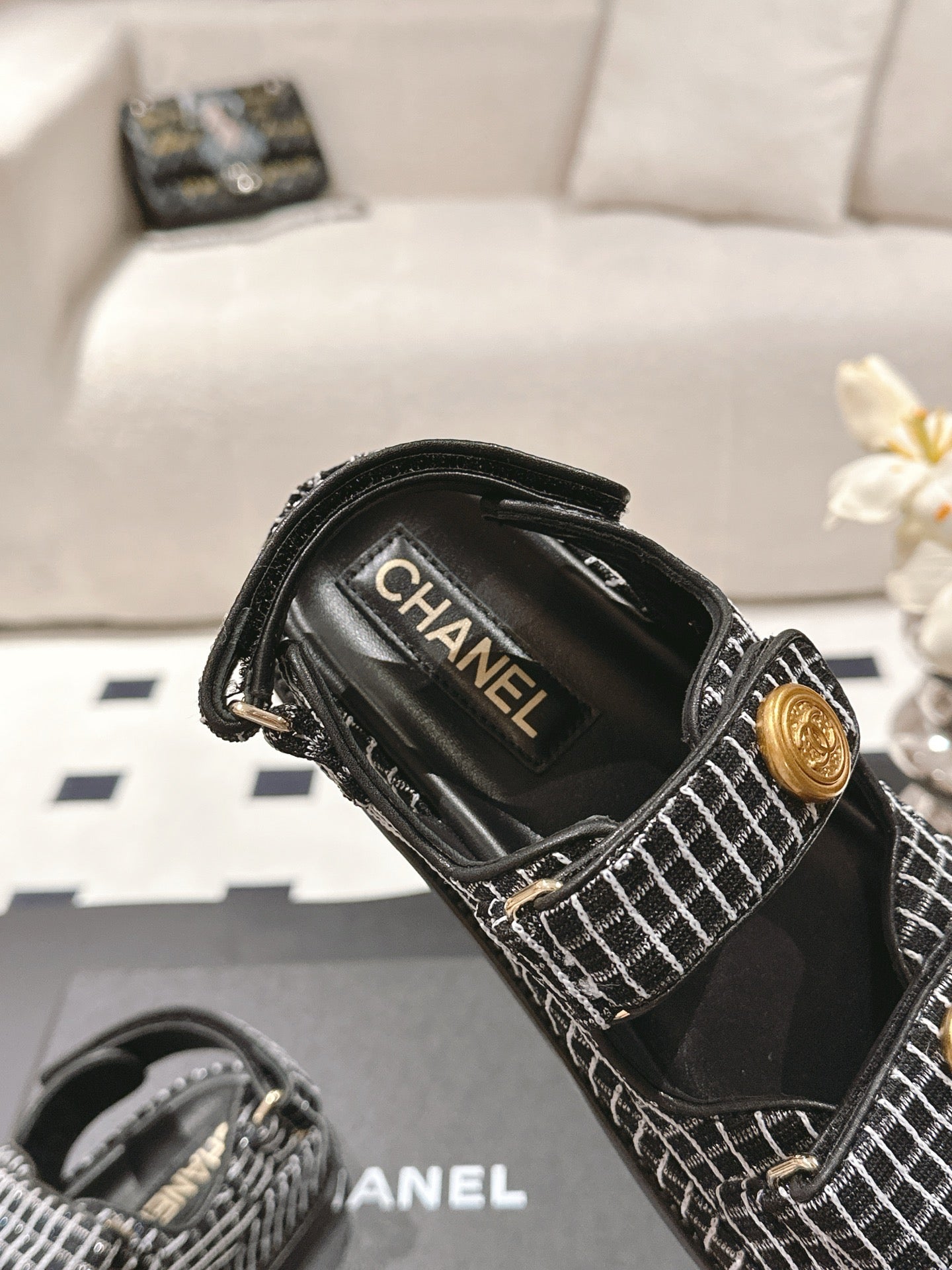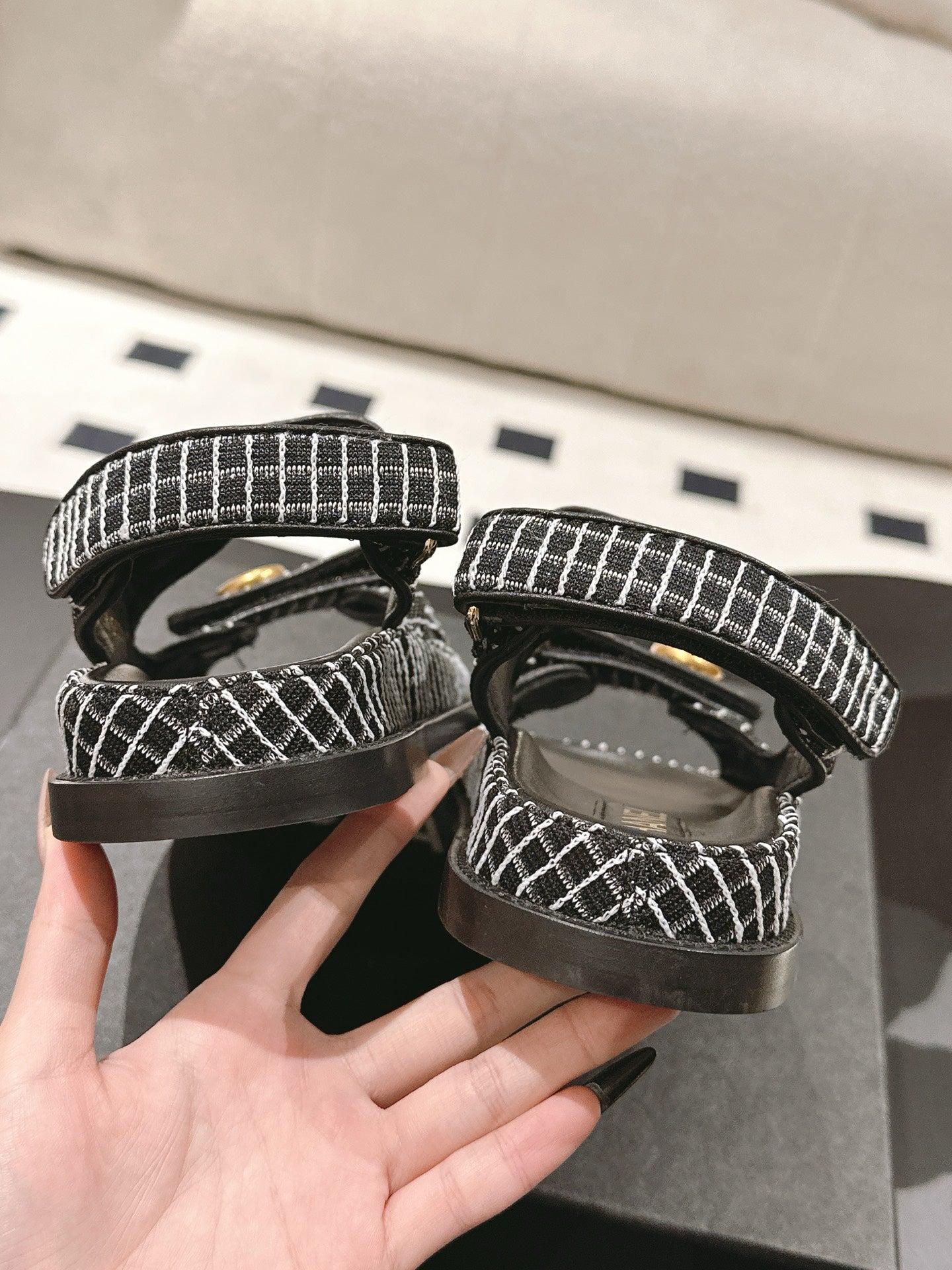 cc 25p dad sandal black white tweed 237565