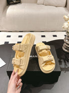 cc 25p logo with pearl mule sandal yellow leather 237582