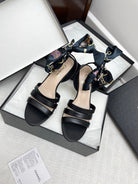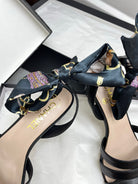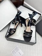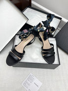 CC 25SS Sandals 5cm Three Straps Black Calfskin 338327