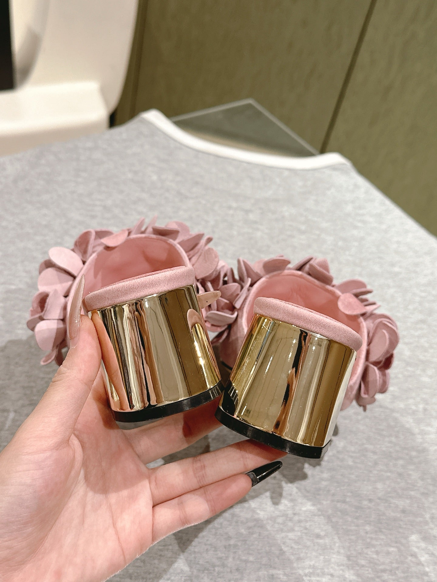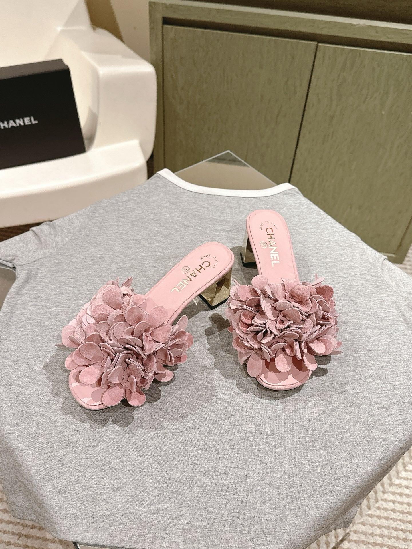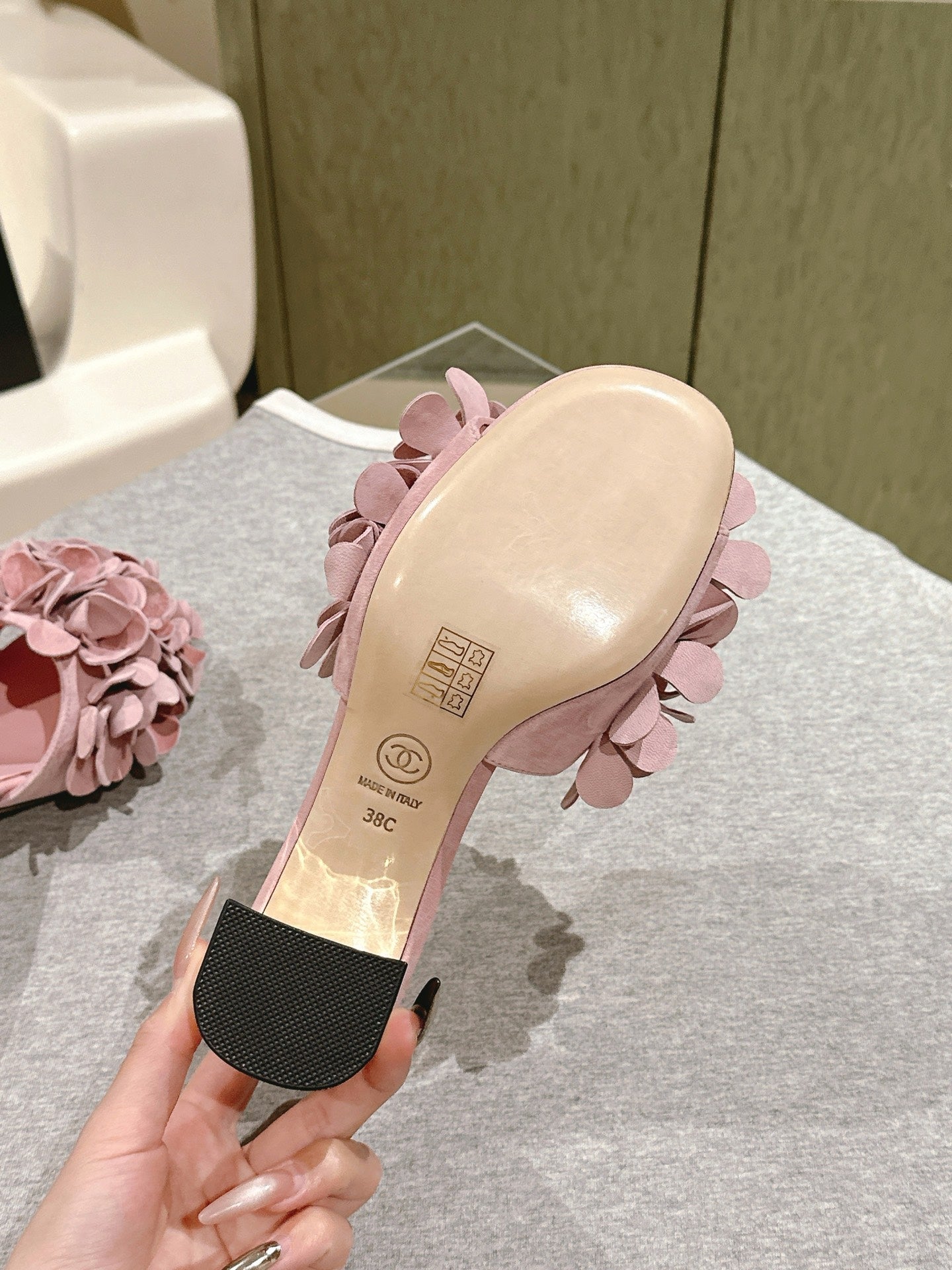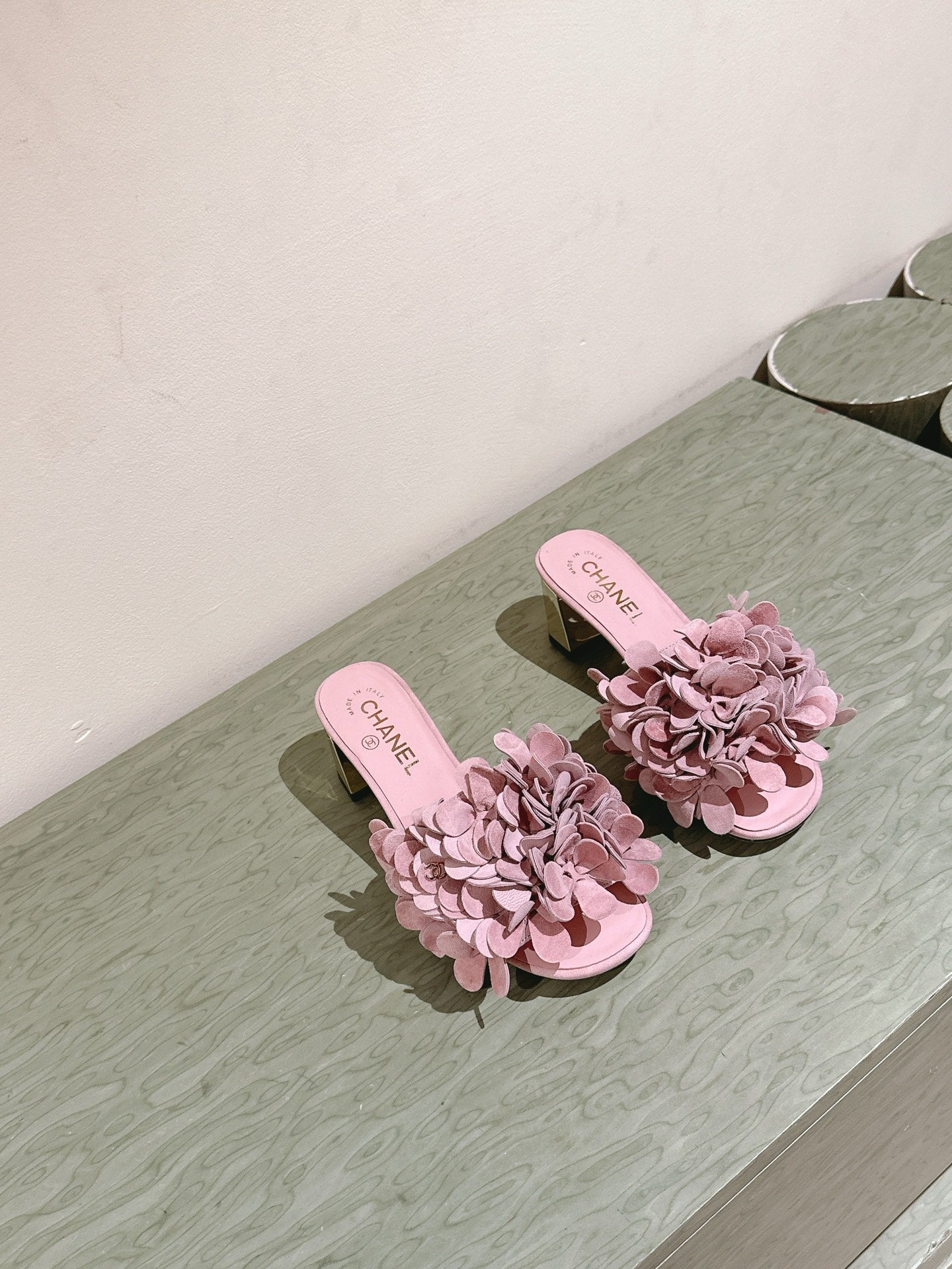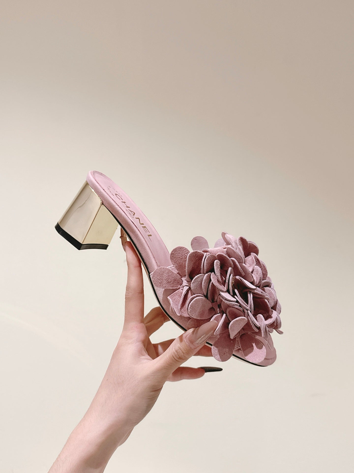 CC Floral Slide Sandals 55mm PInk Suede Cowhide 454285
