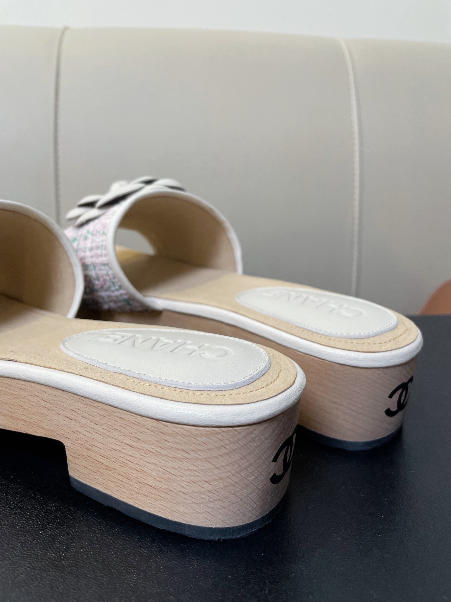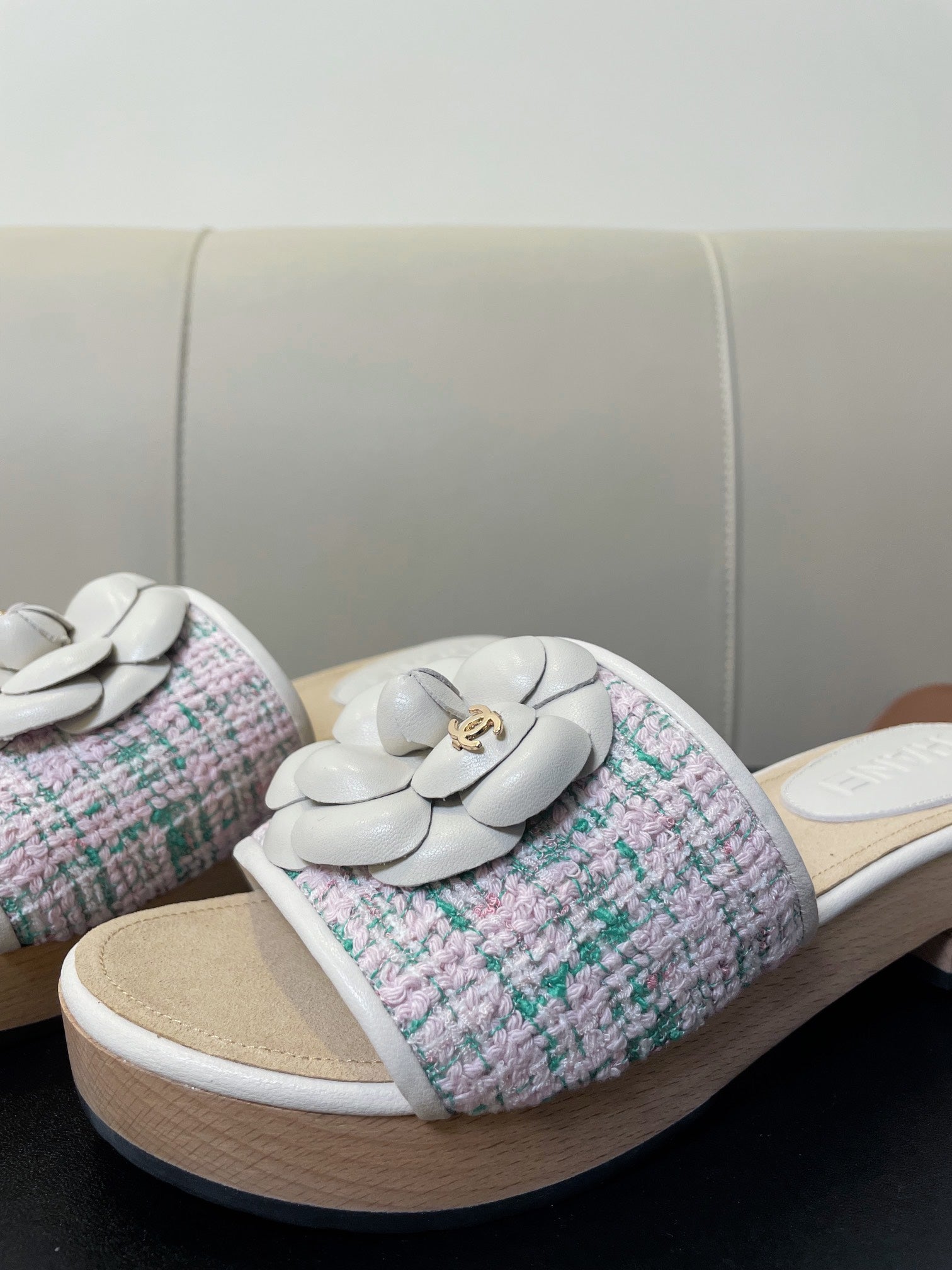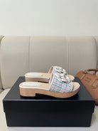 cc mule sandal 45 pink blue fabric beige calfskin