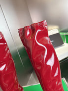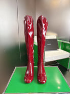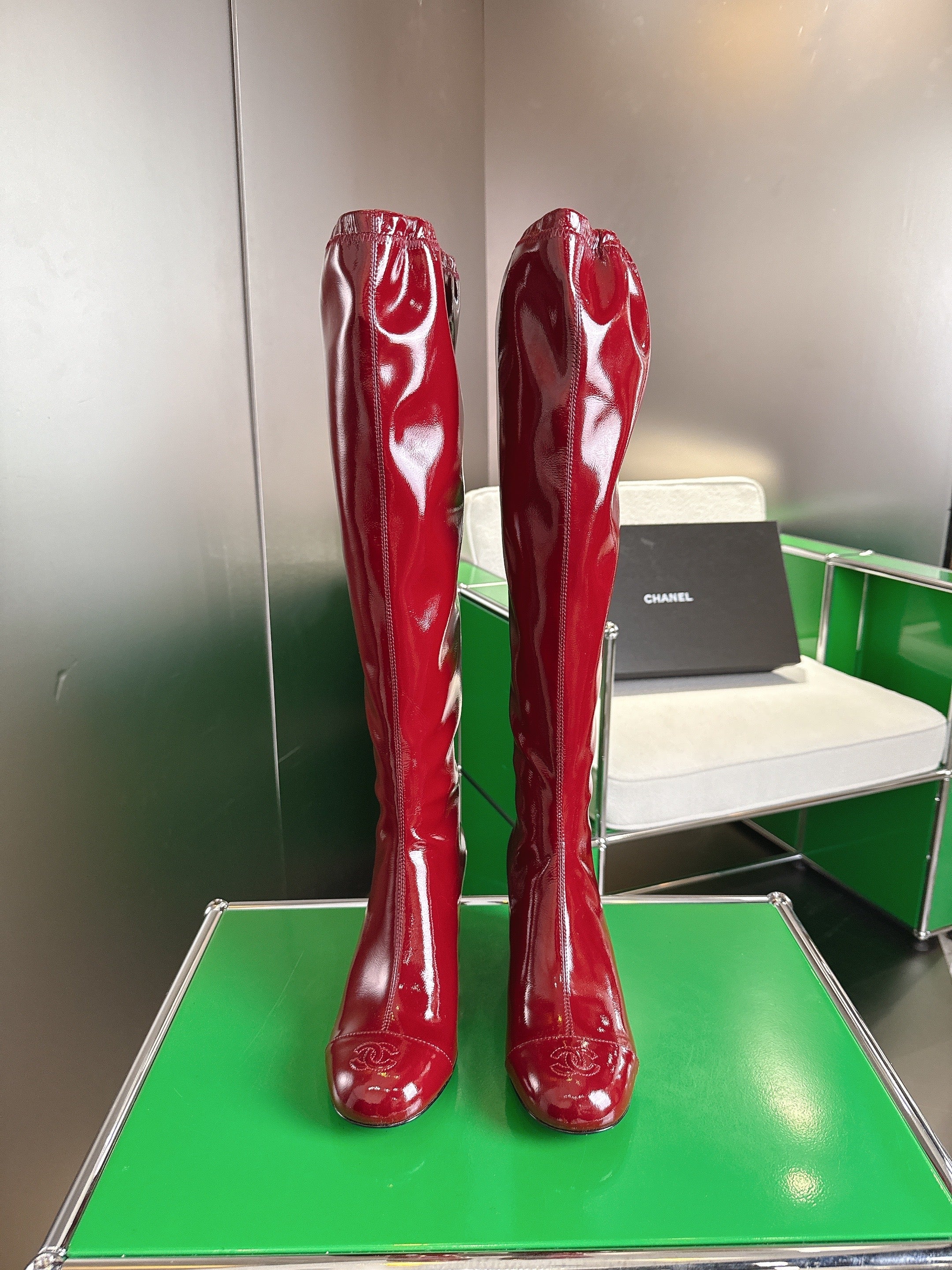 Chanel High-Top Boots Platform Heel 7cm Burgundy Glossy Leather 507532