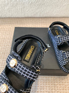 DAD SANDAL IN BLACK MIX WHITE DENIM FABRIC