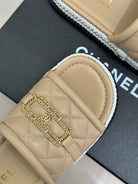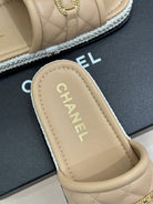 DIAMOND QUILTED CHAIN LAZY SLIPPERS IN BISQUE BEIGE LAMBSKIN