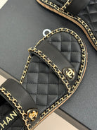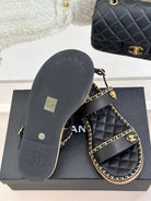 FLAT CHAIN HEART SANDAL IN BLACK LAMBSKIN
