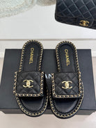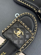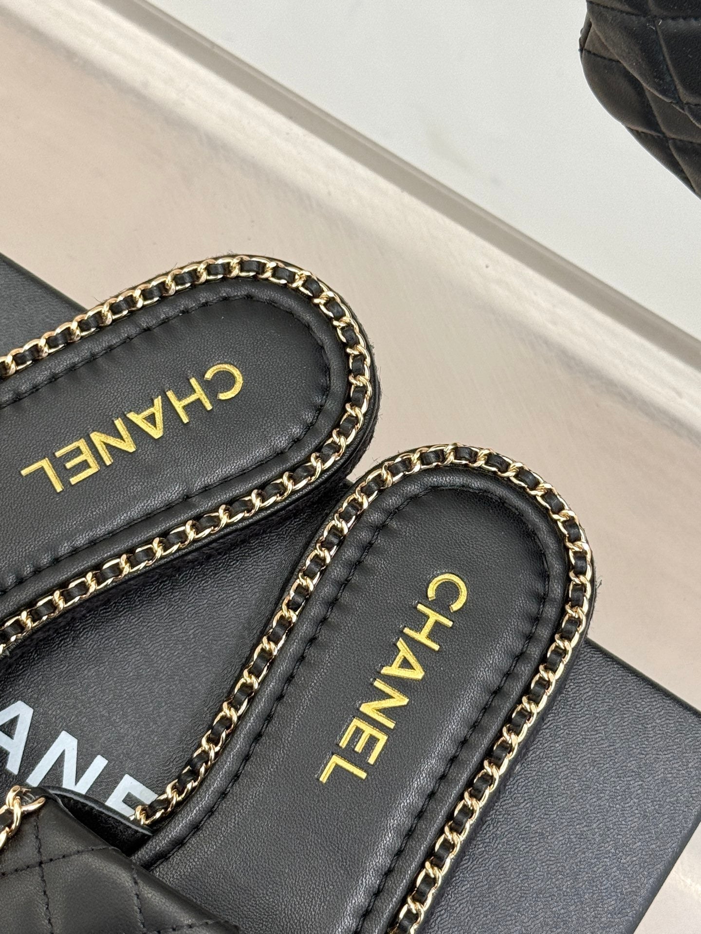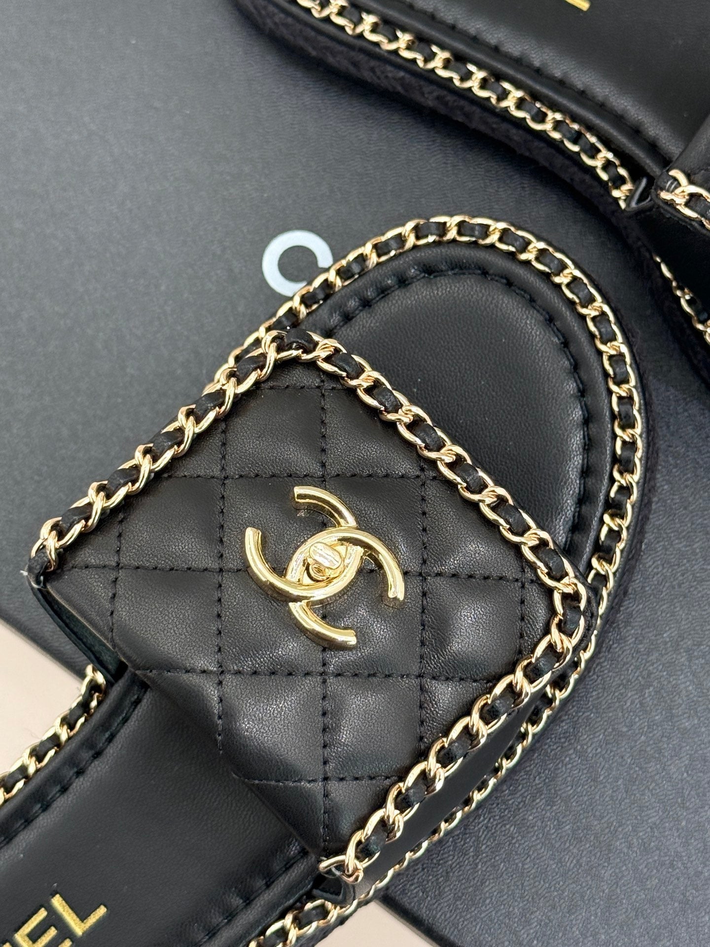 FLAT CHAIN HEART SLIPPER IN BLACK LAMBSKIN