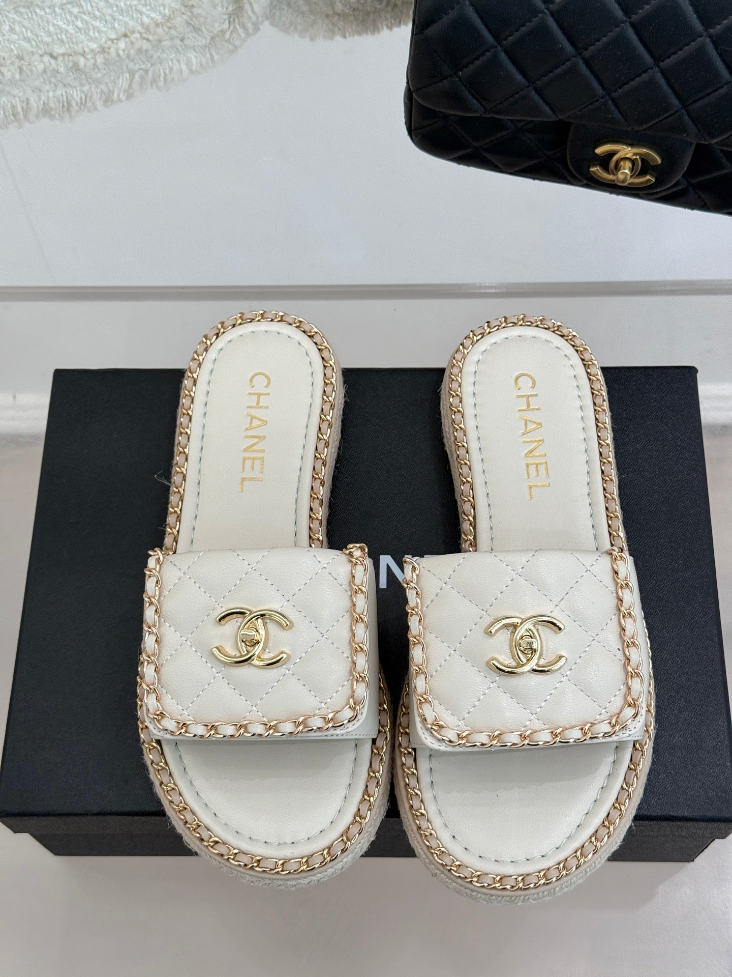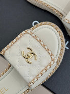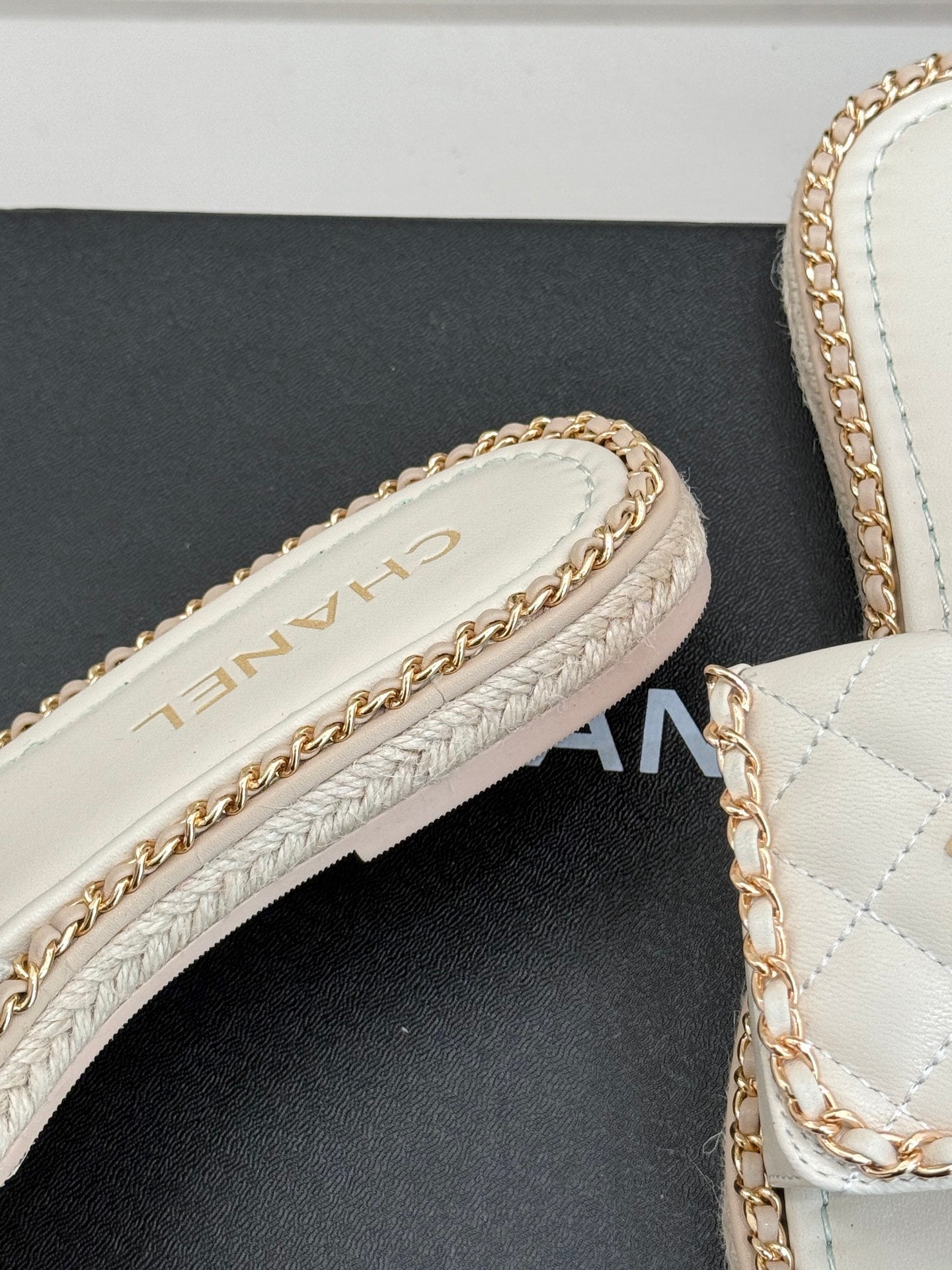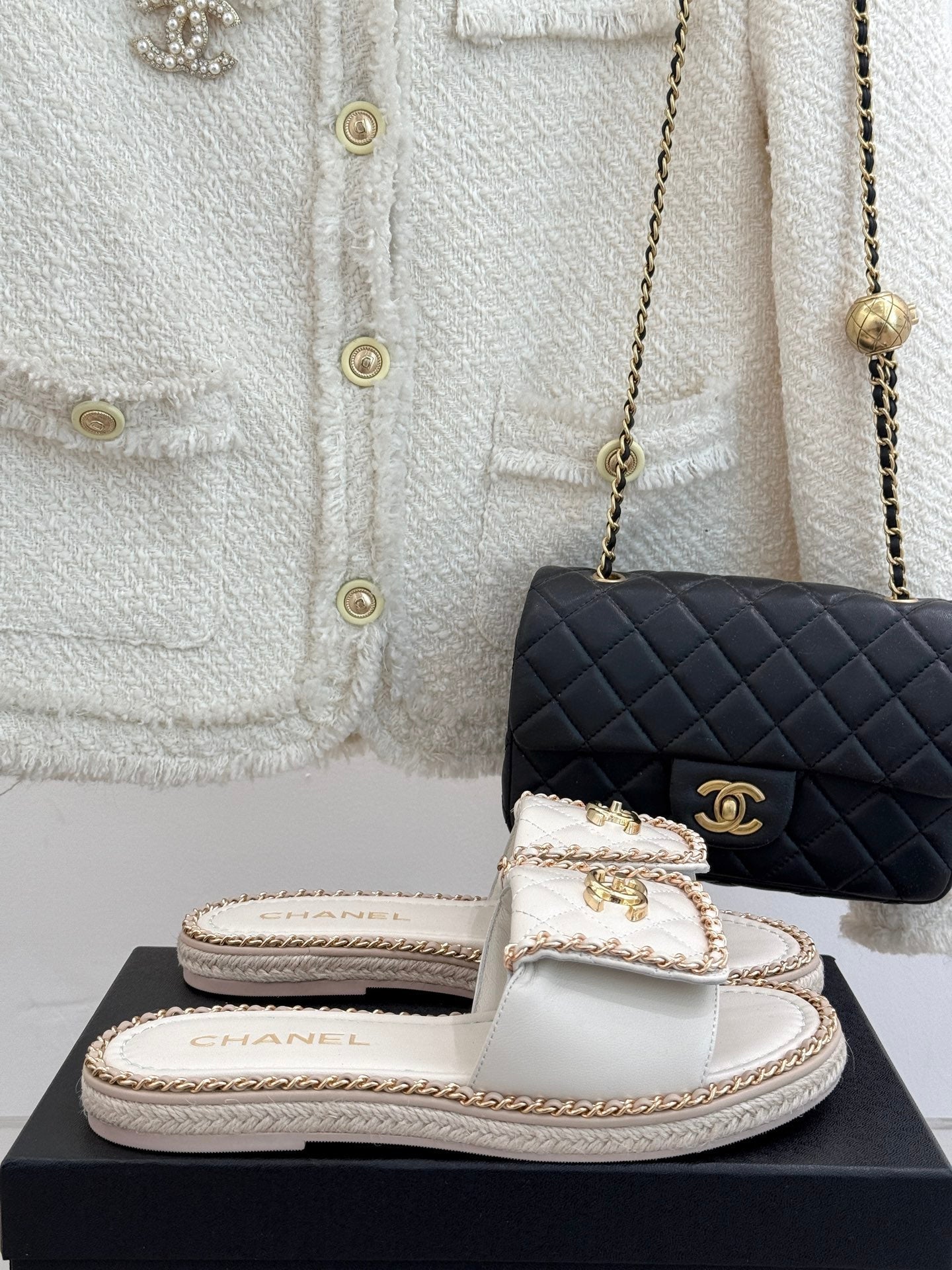 FLAT CHAIN HEART SLIPPER IN WHITE LAMBSKIN