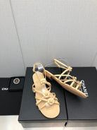 FLORAL FLAT SANDAL IN SAND YELLOW LAMBSKIN