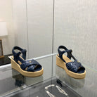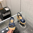 PEEP-TOE THICK SOLE SANDALS IN NAVY BLUE PATENT LAMBSKIN