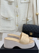 THICK SOLE WEDGE SLIPPERS IN BISQUE BEIGE CALFSKIN