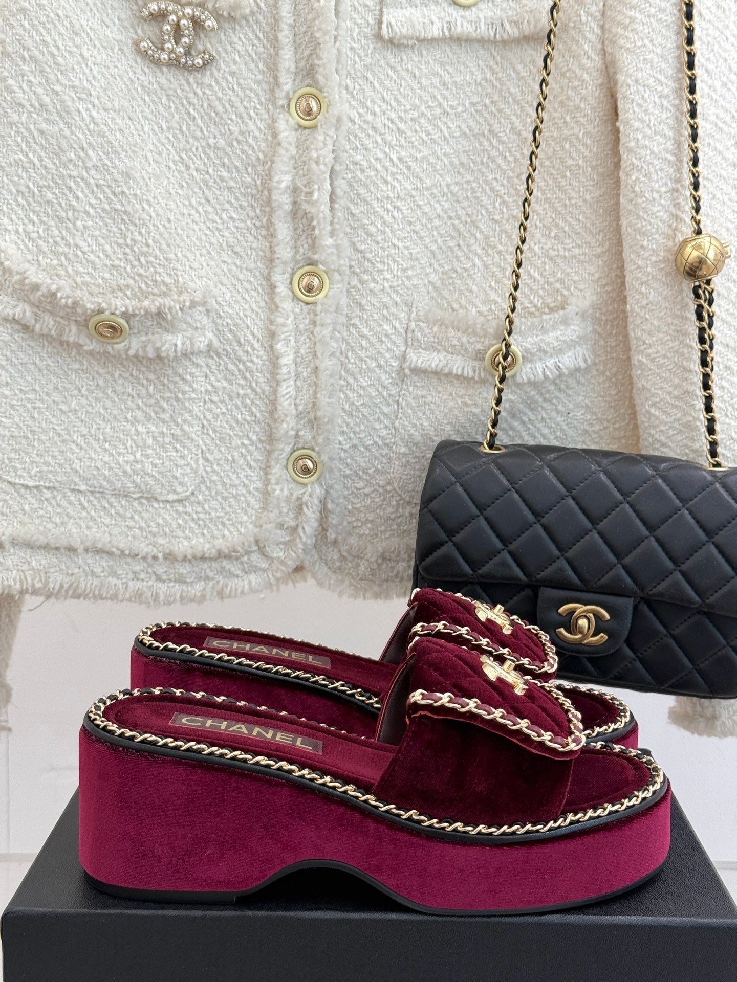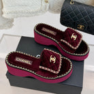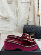 THICK-SOLED CHAIN HEART SLIPPER IN PLUM PURPLE VELVET
