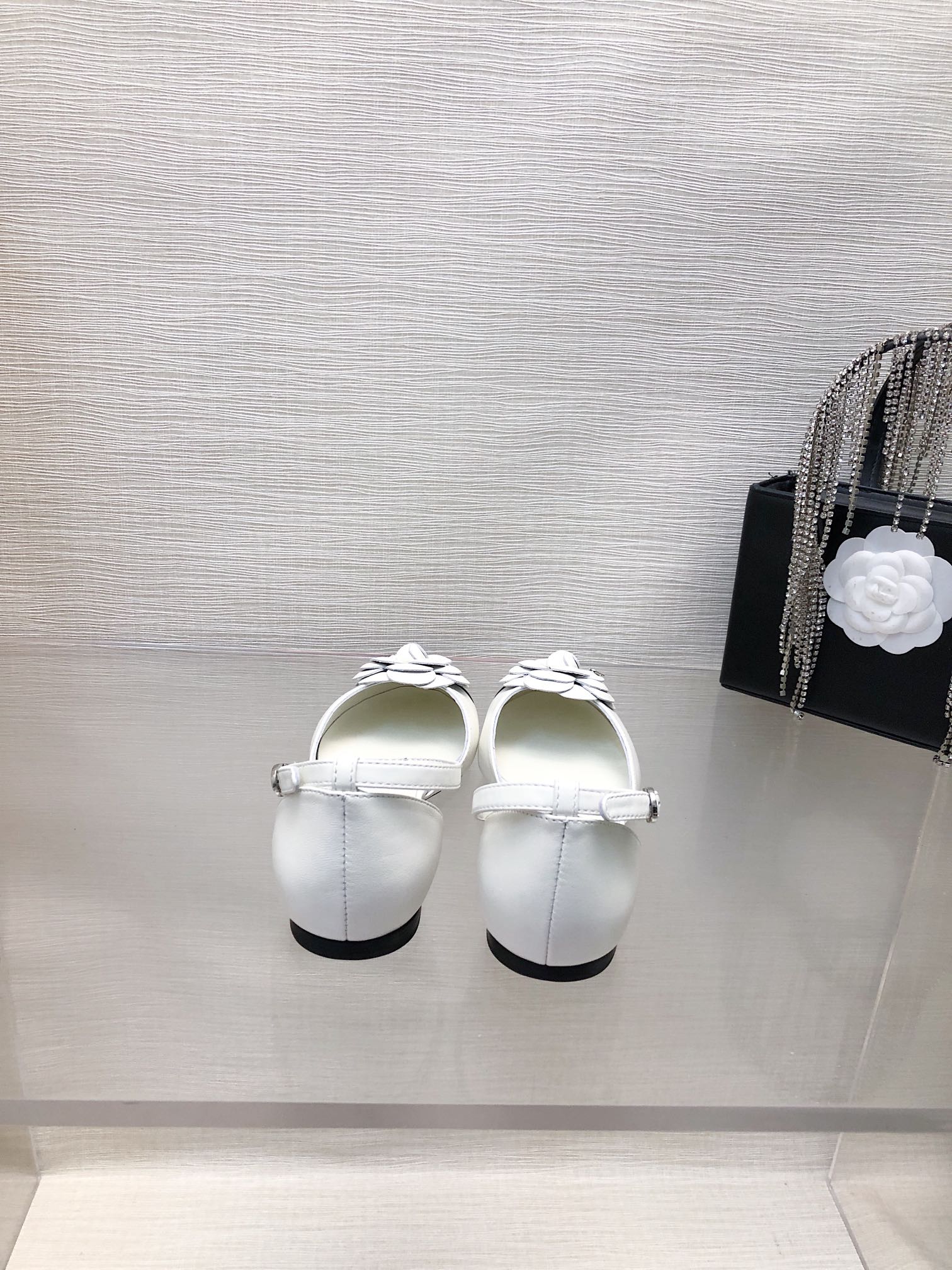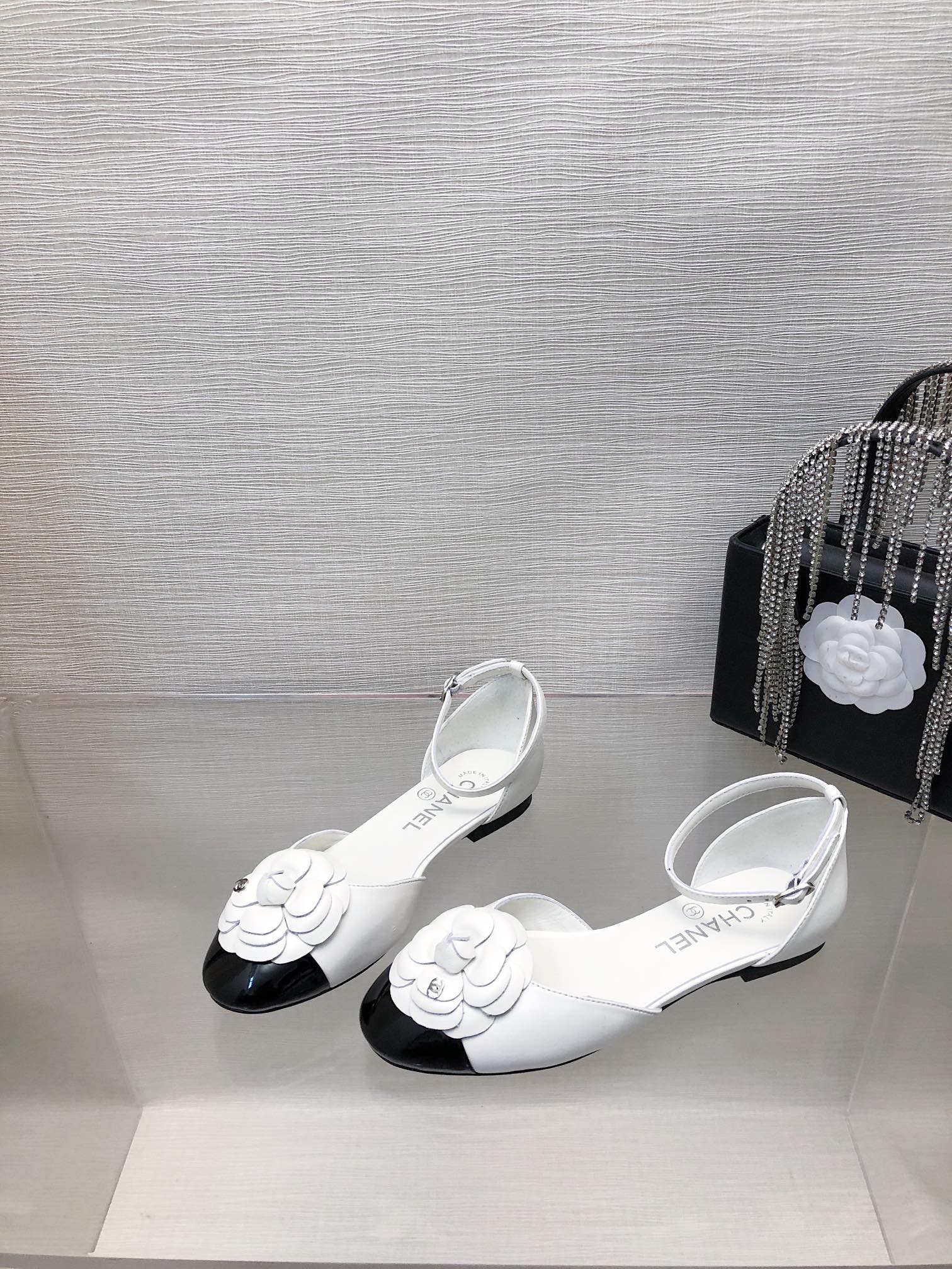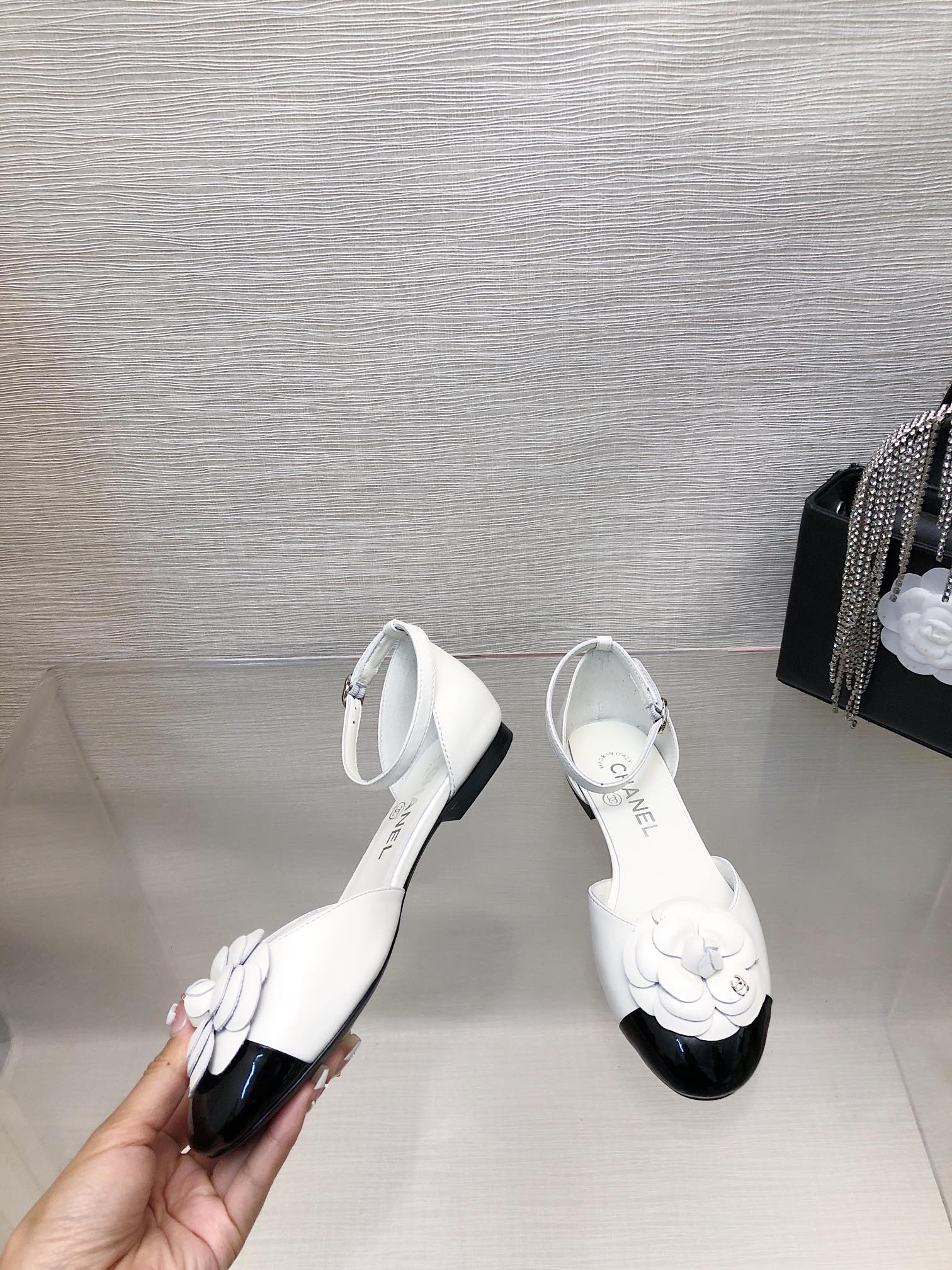 WHITE MIX BLACK LAMBSKIN CAMELLIA HOLLOW SANDAL