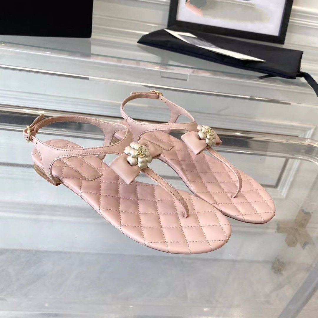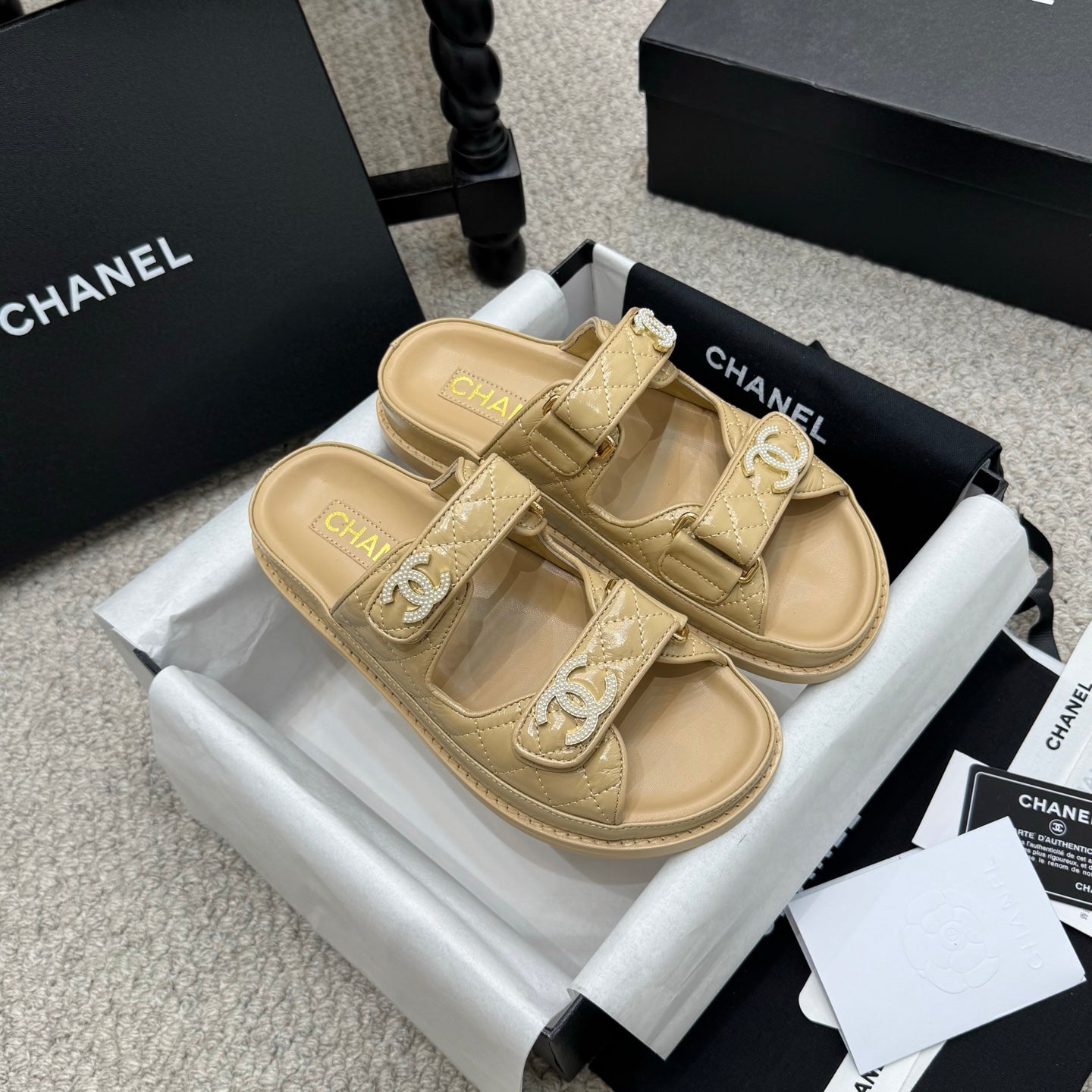 CC Mesh Hollow Chain Double C Thick-Soled Slippers 70mm Beige 265649