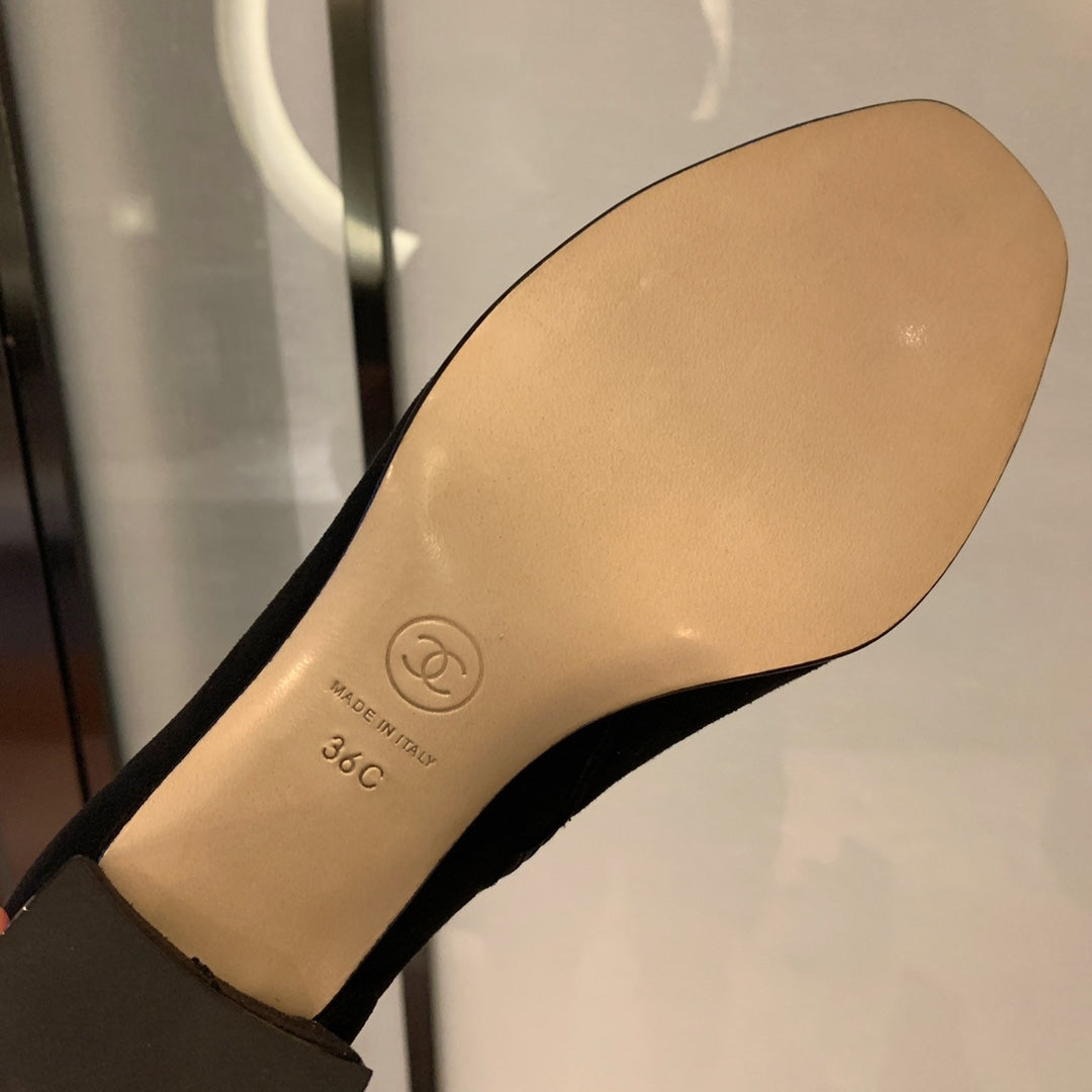 cc 2024k slingback 30mm black suede pattern calfskin 237503
