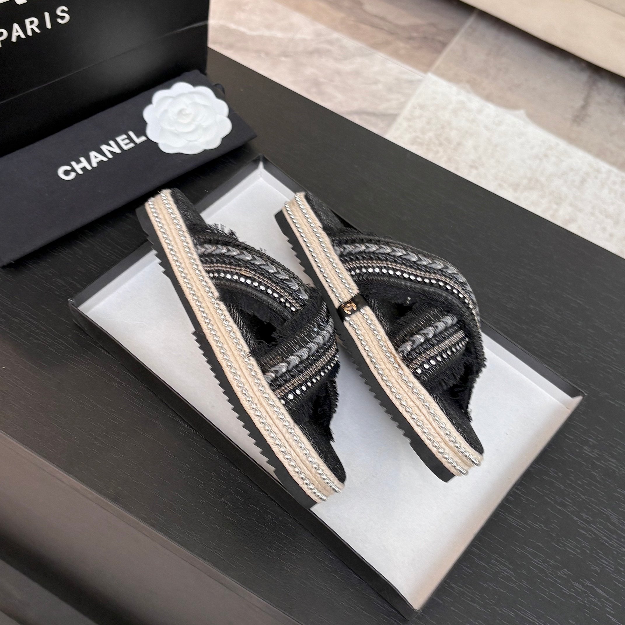 CC 25C Thick-Soled Slipper In Black Denim Navajo White Fabric 213233