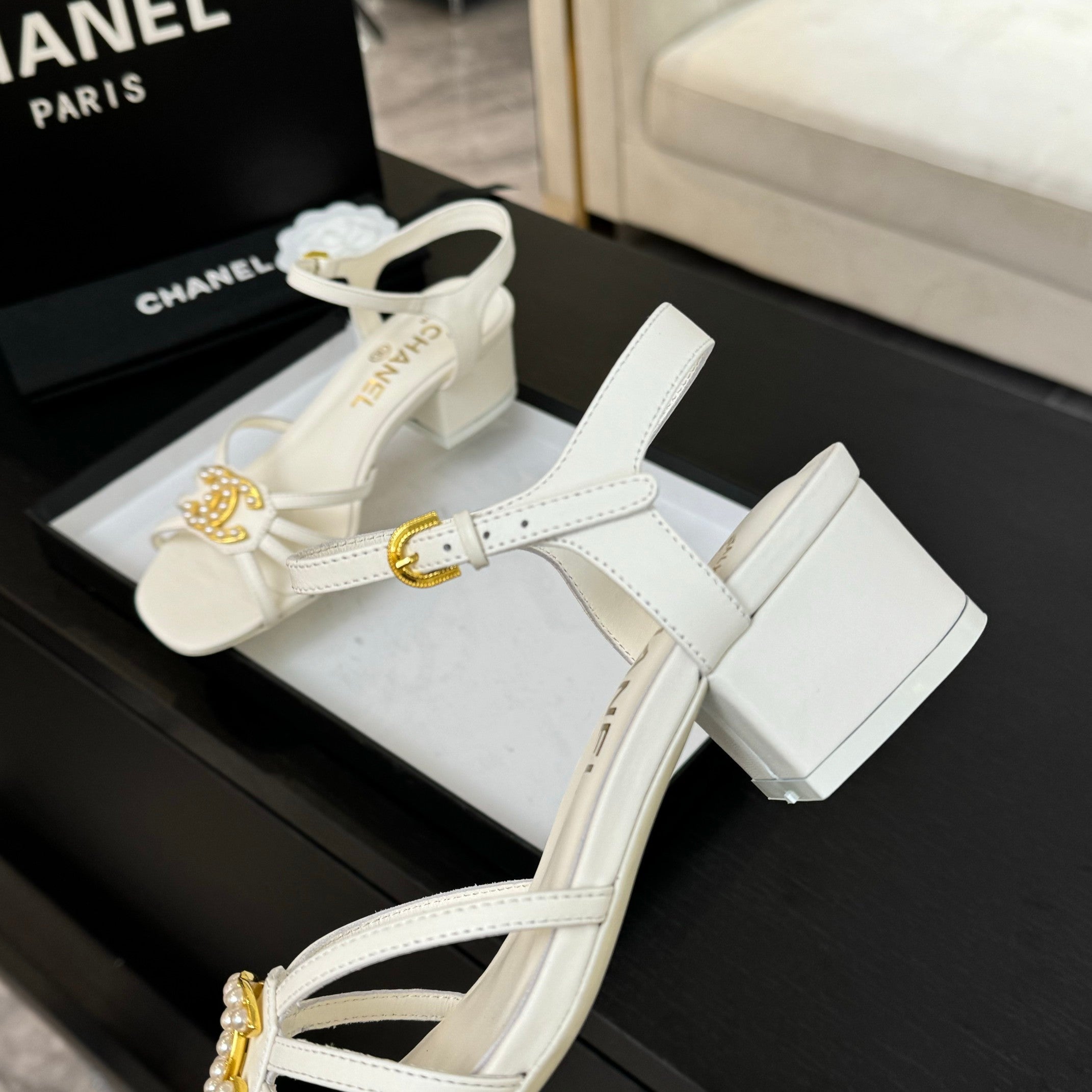 CC 25C 5CM Mid Heed Sandals White Italian Leather 213316