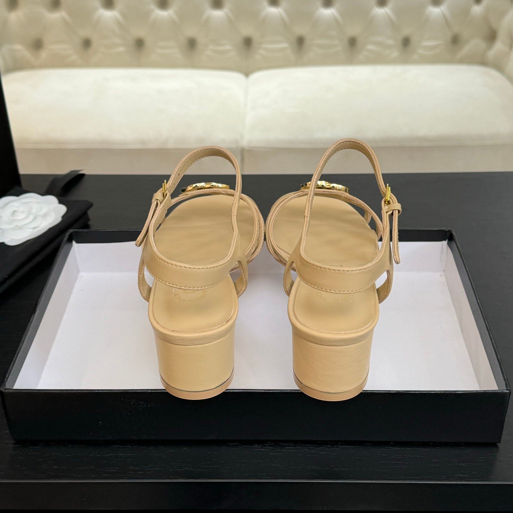 CC 25C 5CM Mid Heed Sandals Cream Italian Leather 213317