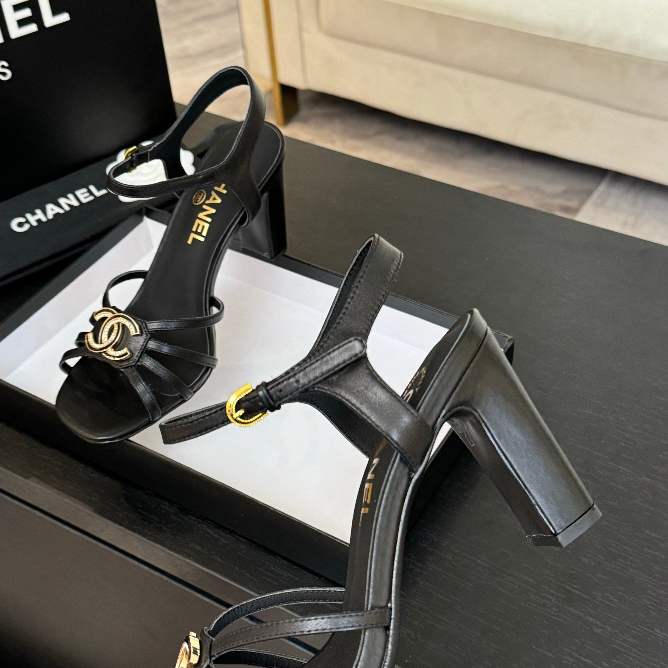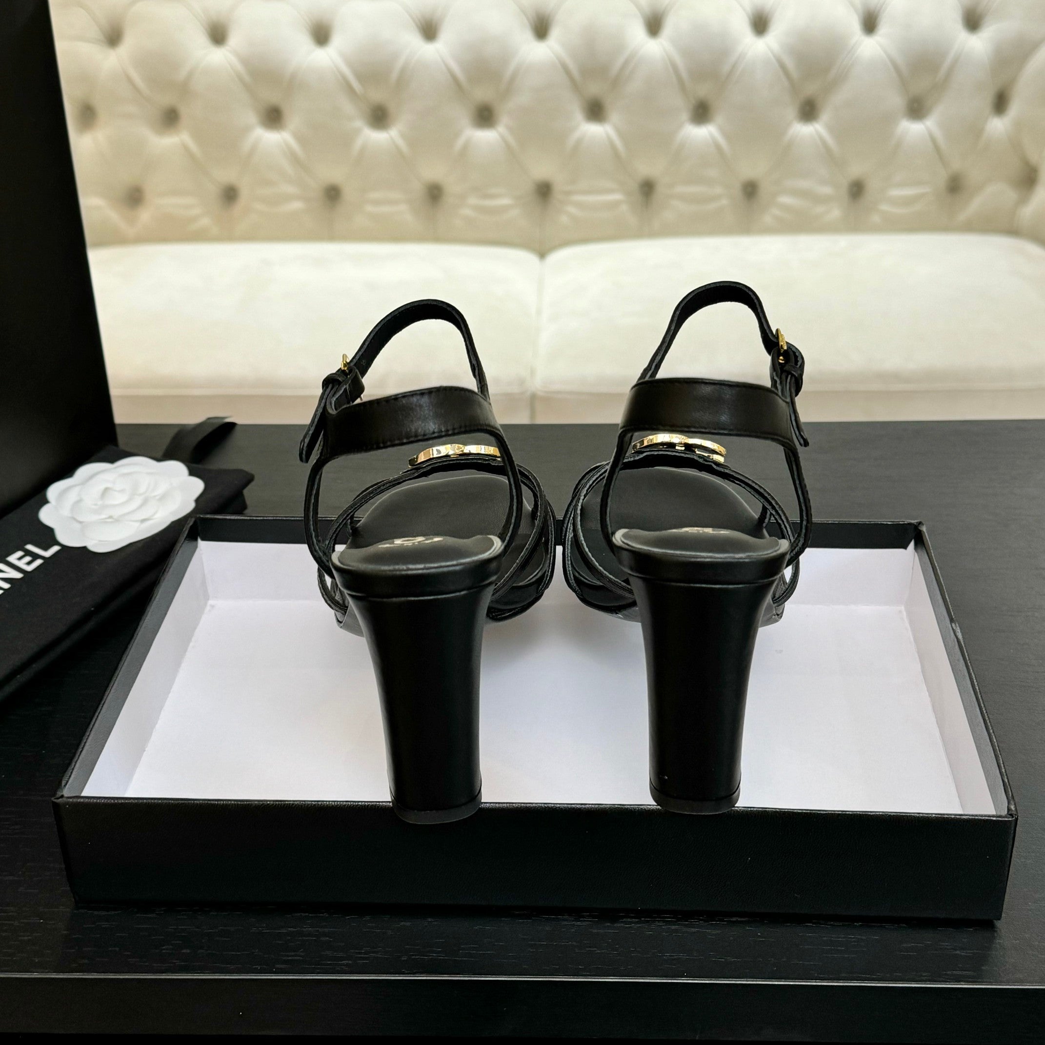 CC 25C 10CM Mid Heed Sandals Black Italian Leather 213318