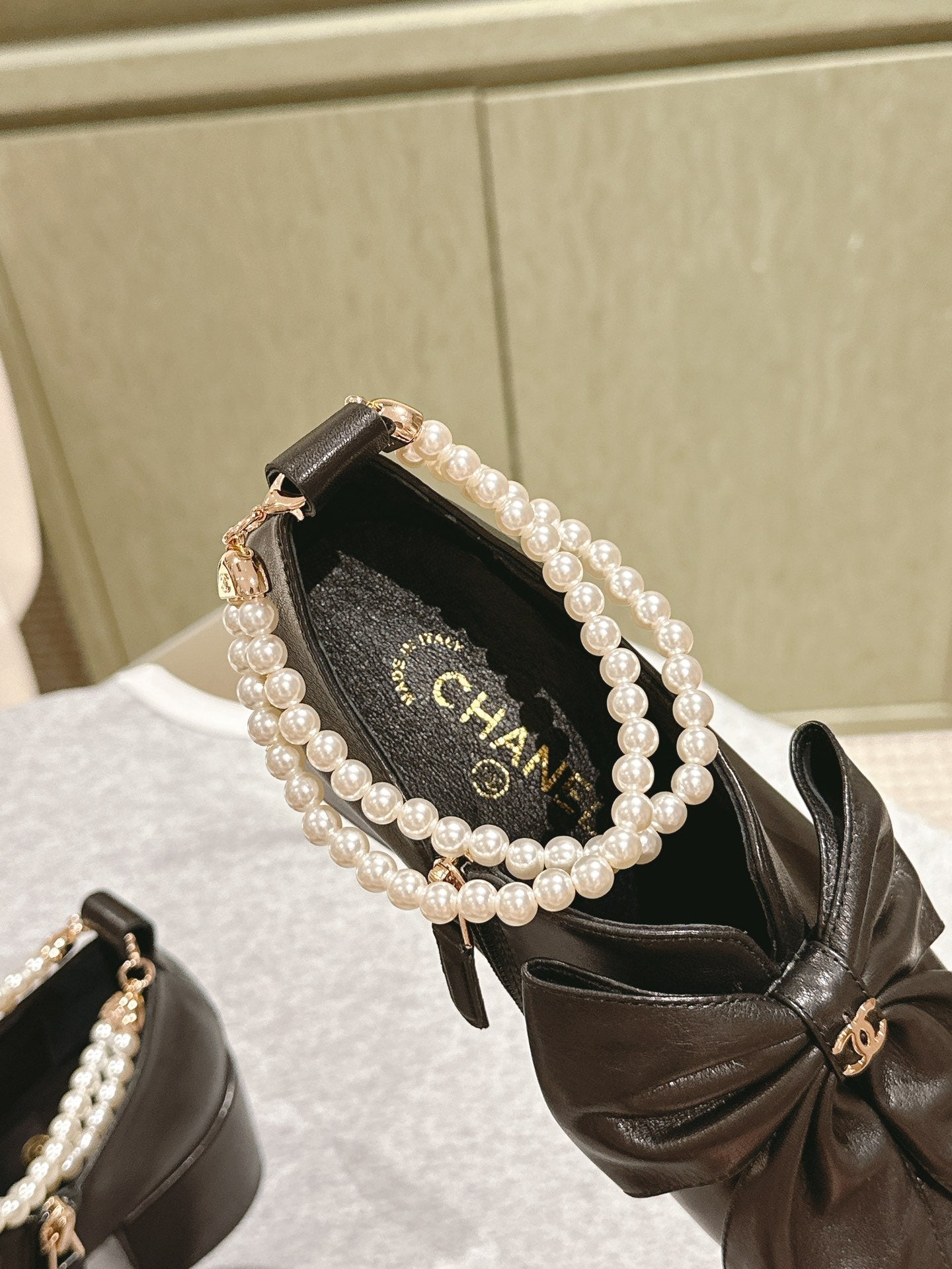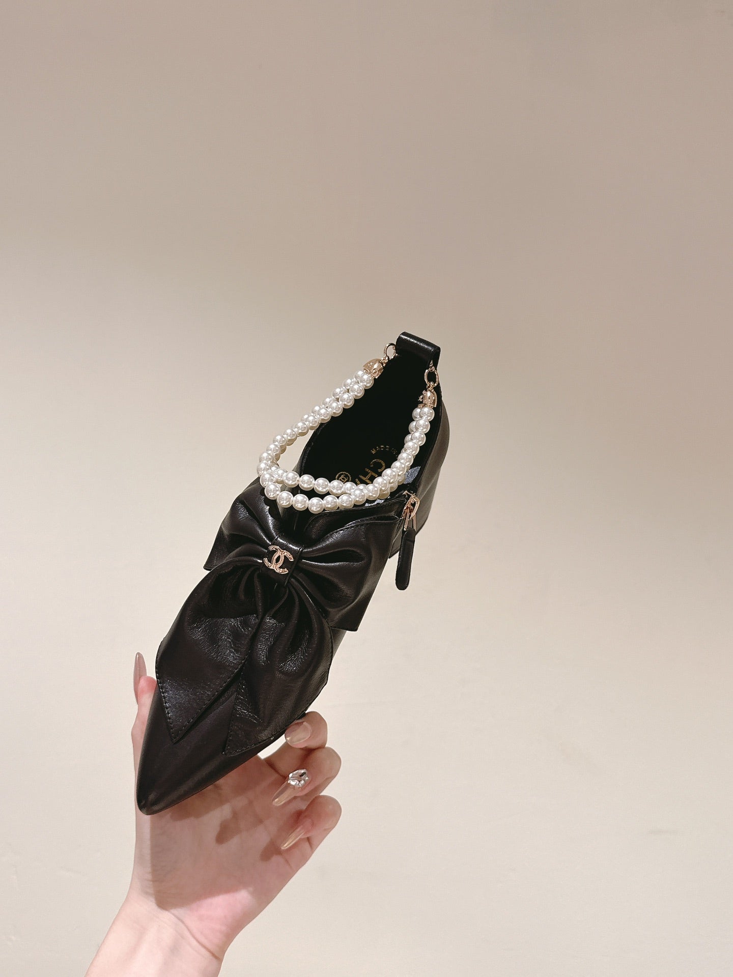 CC 24A Pearl Bow Slingbacks 65mm Black Sheepskin 447465