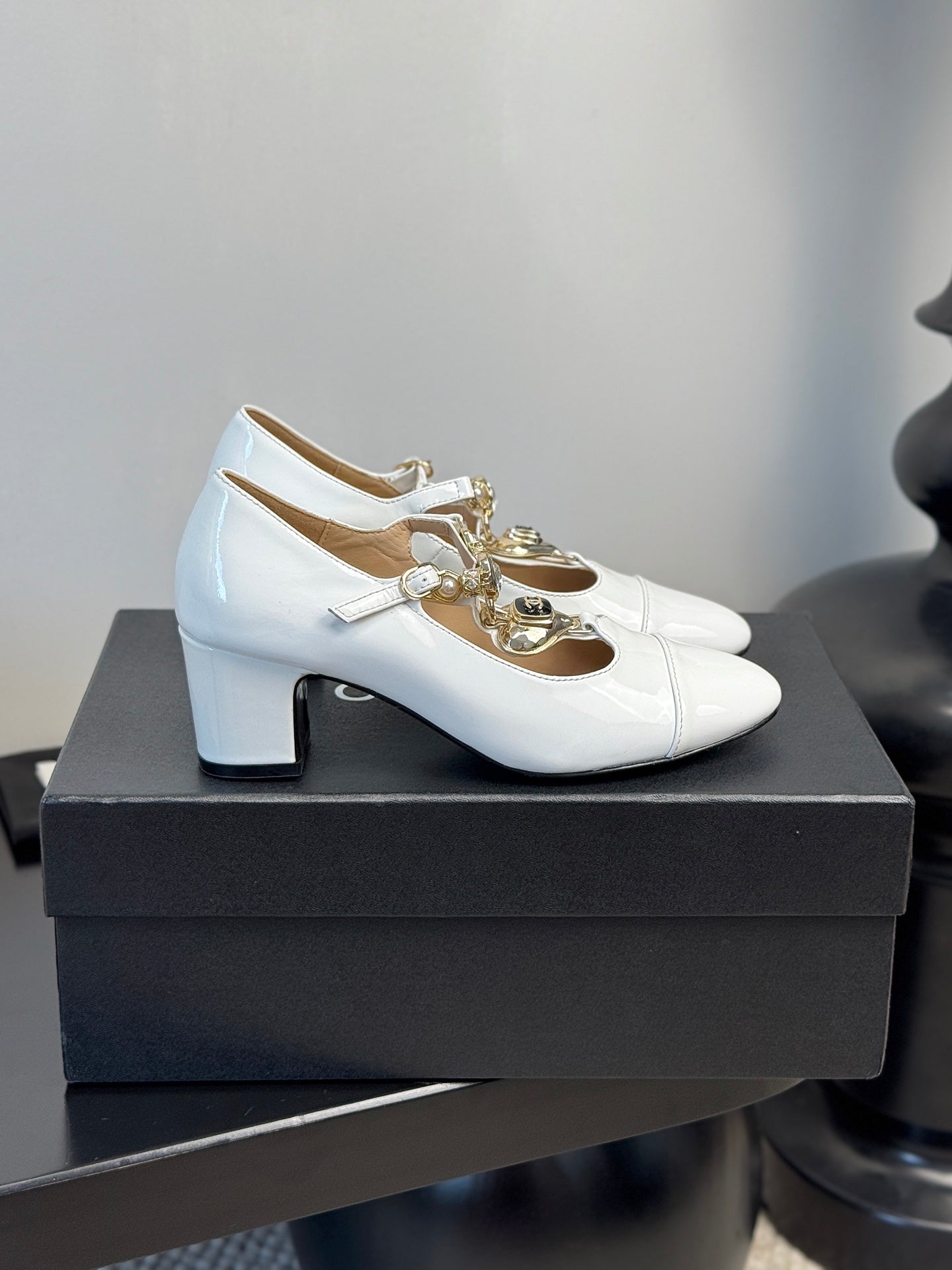 CC 25 Marry Jane White Glossy Lambskin 329764