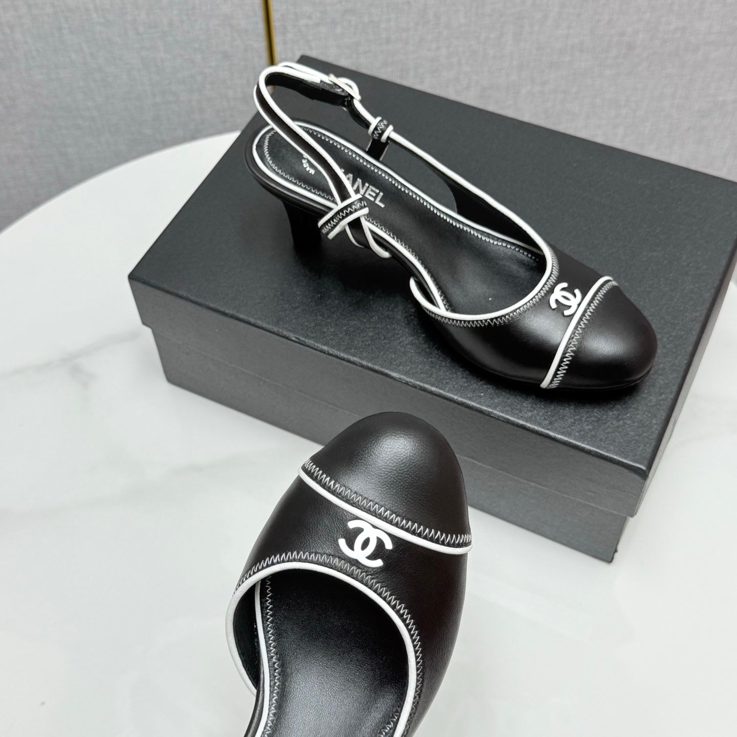 CC 25 Slingback 50mm Black White Sheepskin 368797