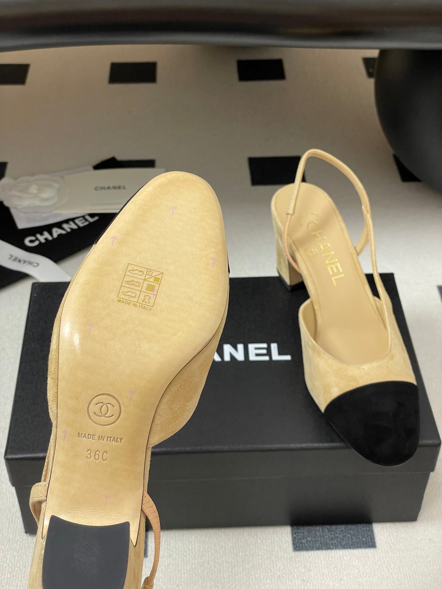 CC 25 SlingBack 65mm Beige Black Suede 393991