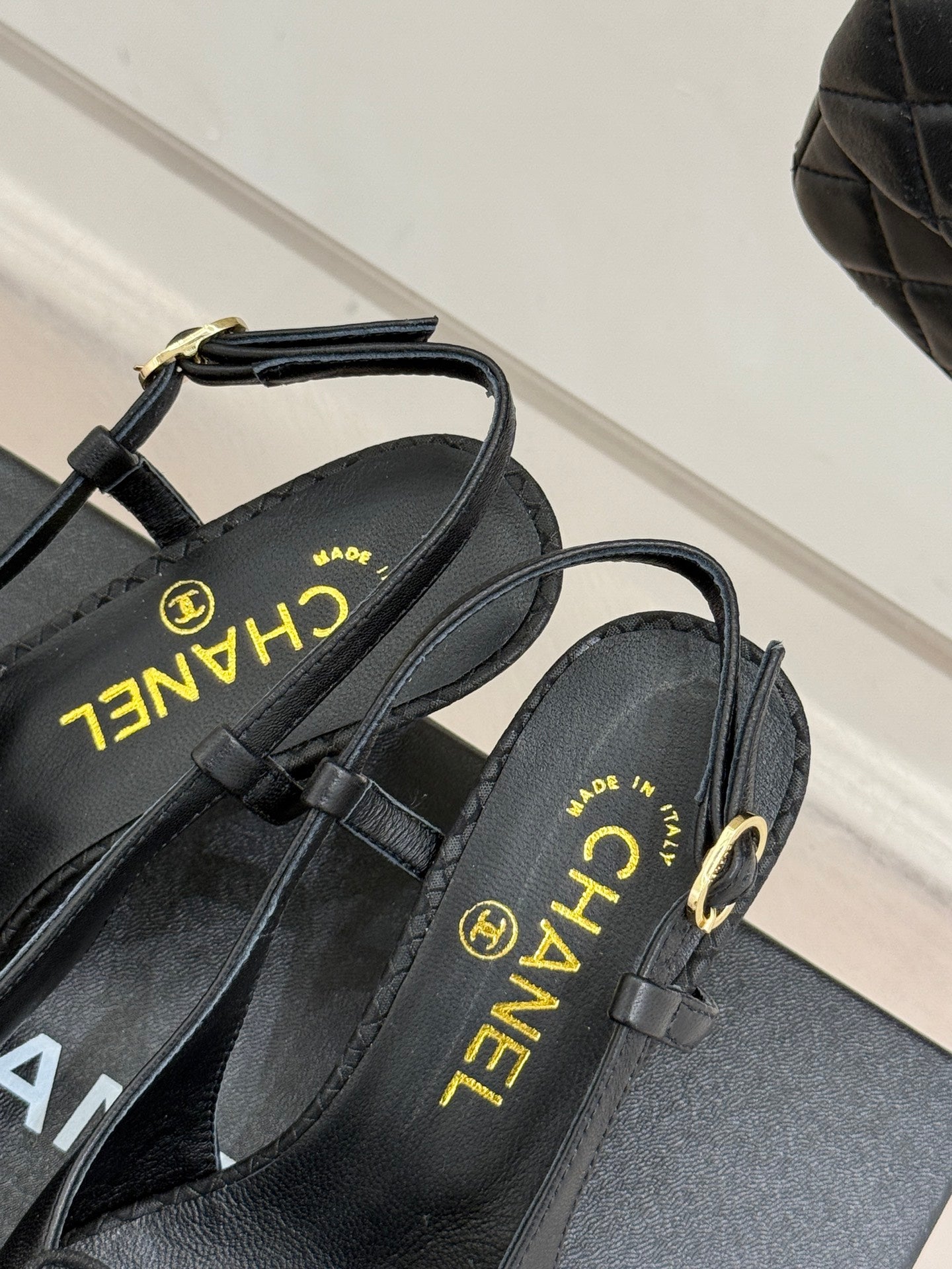 CC 25C Bowknot Slingback Sandal 60mm Black Sheepskin Black Grosgrain 265655