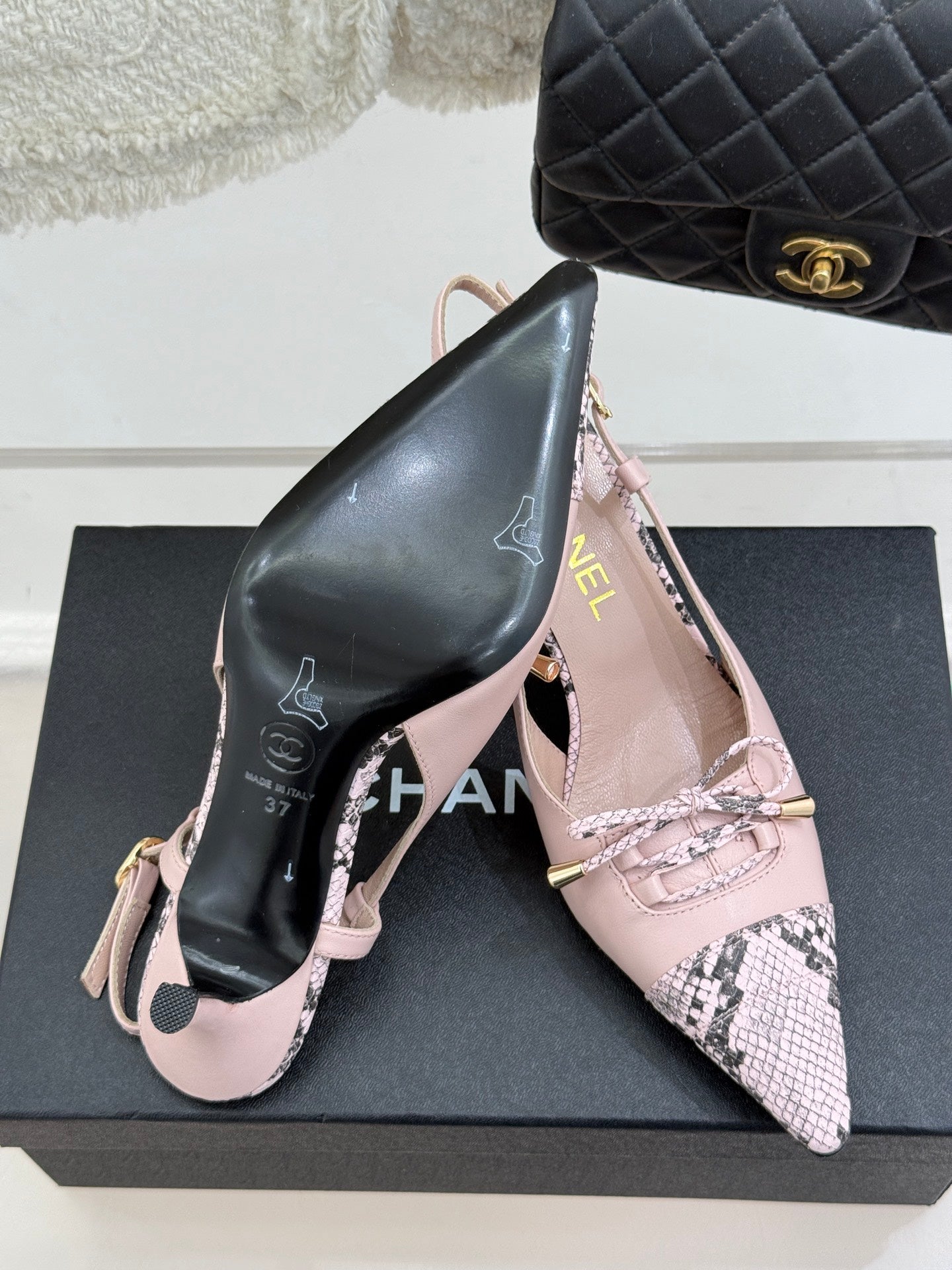 CC 25C Bowknot Slingback Sandal 60mm Light Pink Sheepskin Mix Python Pattern 265654