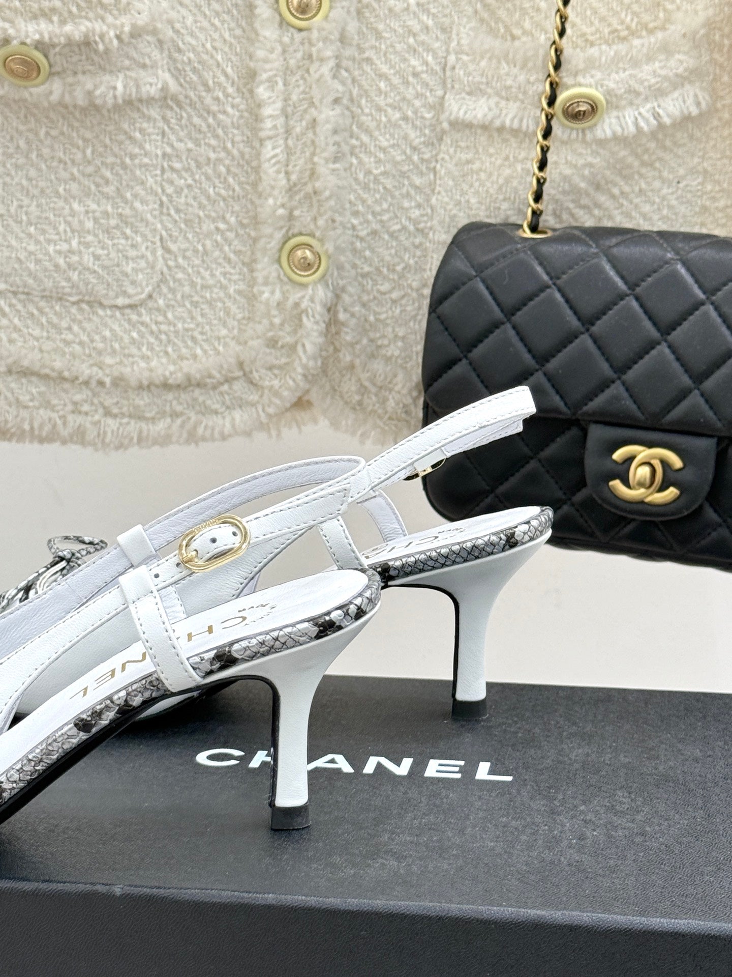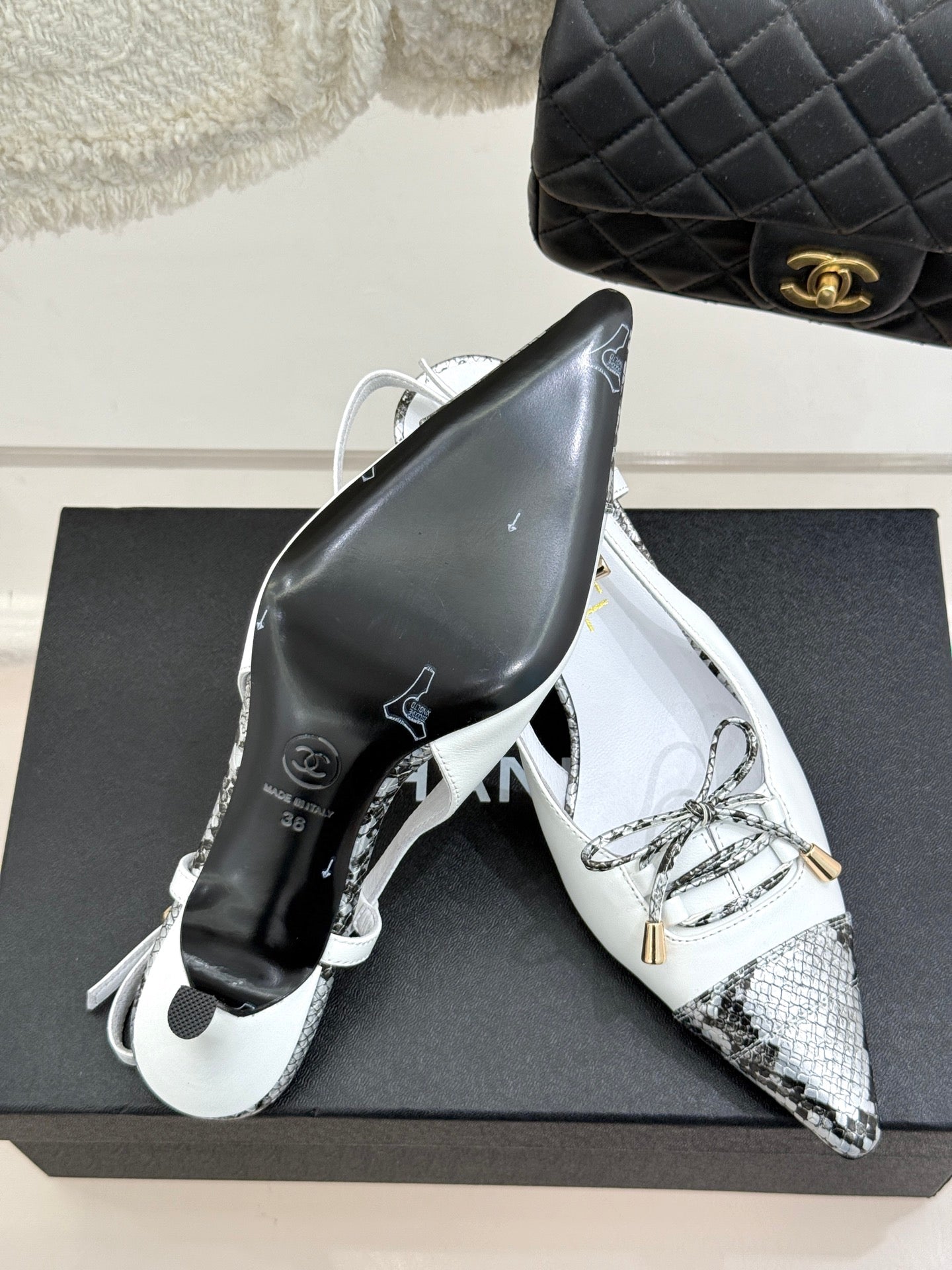 CC 25C Bowknot Slingback Sandal 60mm White Sheepskin Mix Python Pattern 265652