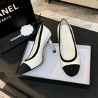 CC 25S Pump 85mm White Calfskin Black Grosgrain