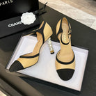 CC 25S Slingback 85mm Beige Calfskin Black Grosgrain