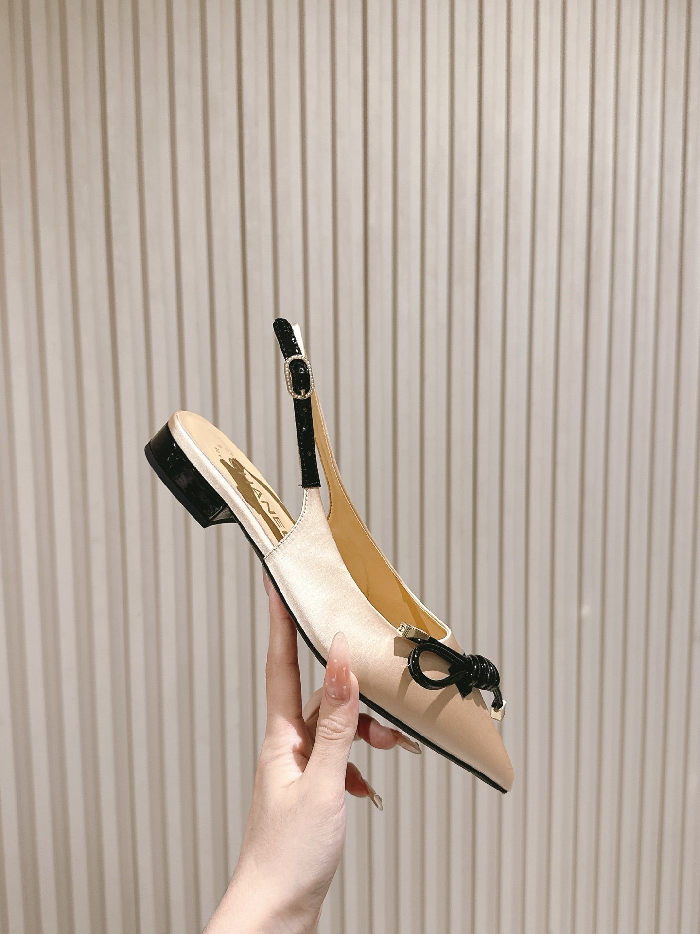 CC 25ss Bow Tie Slingbacks 20mm Beige Satin & Patent Leather 447410
