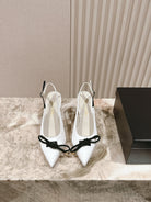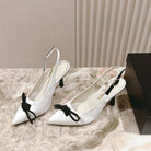 CC 25ss Bow Tie Slingbacks 85mm White Satin & Patent Leather 447412