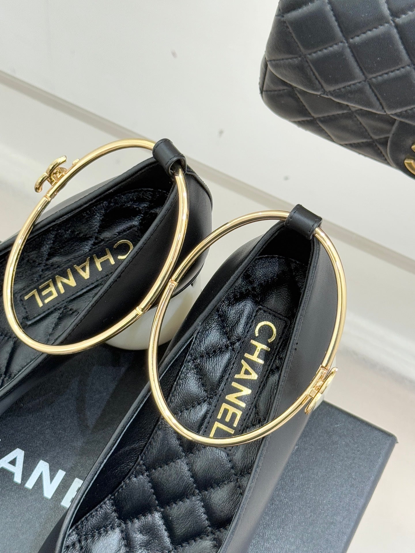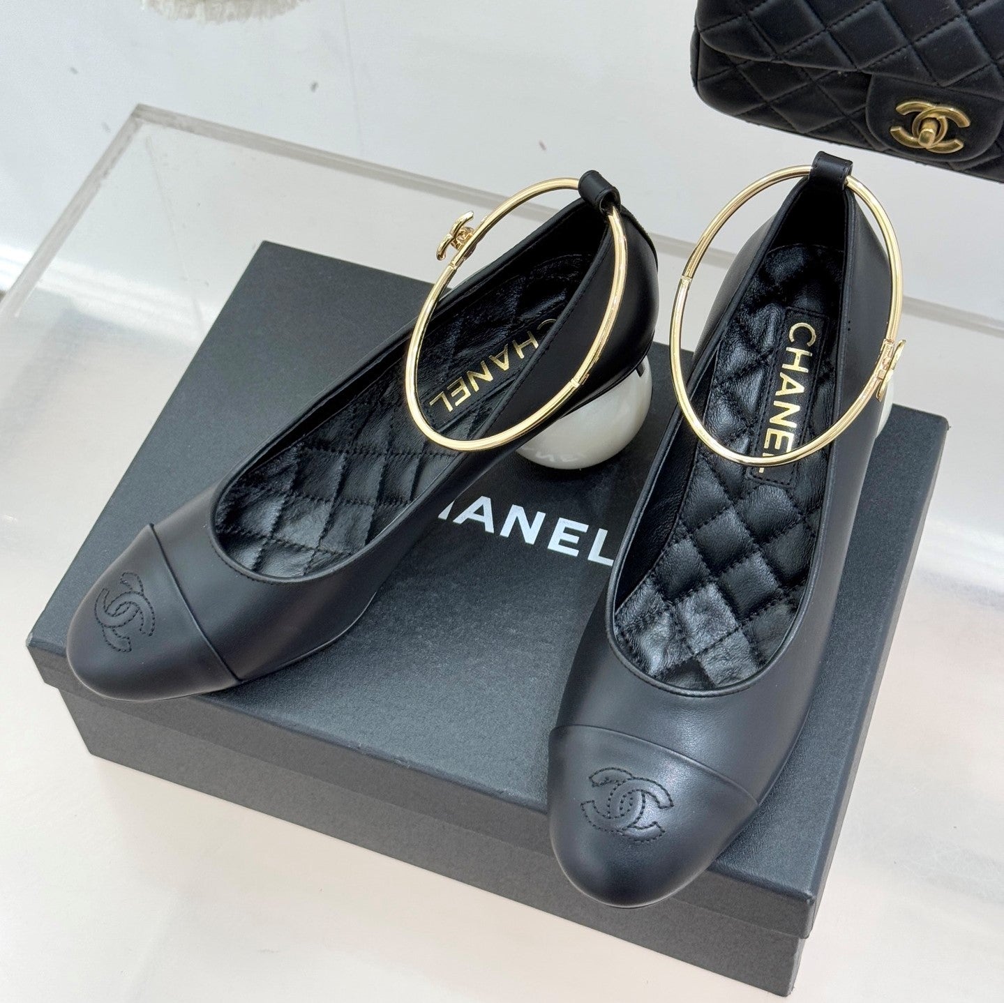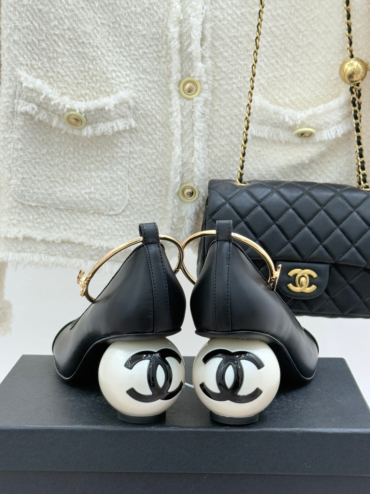 CC 26C Ribbon Camellia Mary Jane With Giant Pearl Black Lambskin