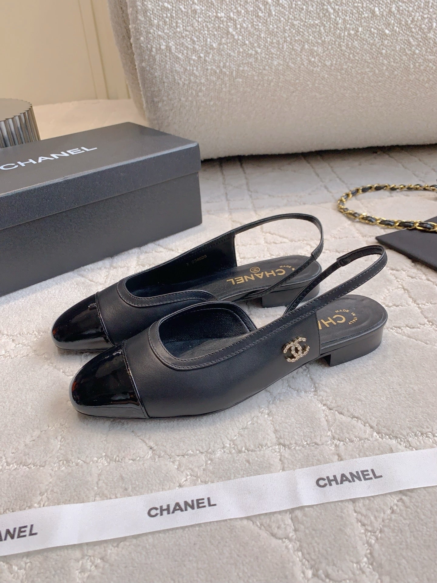 CC Cap Toe Slingback Black Lamskin & Suede 404280