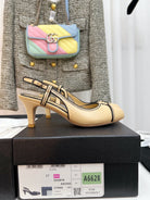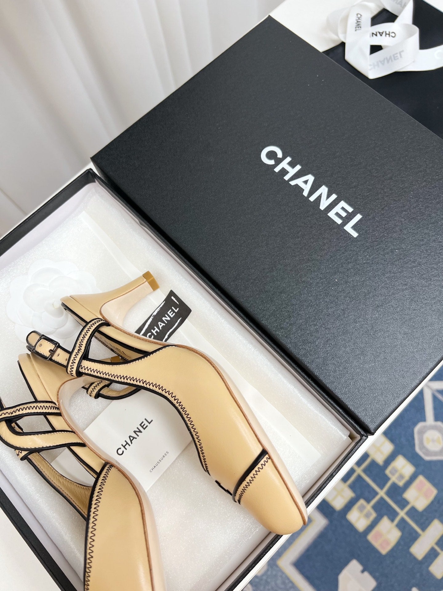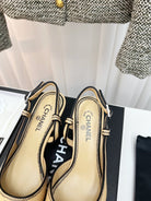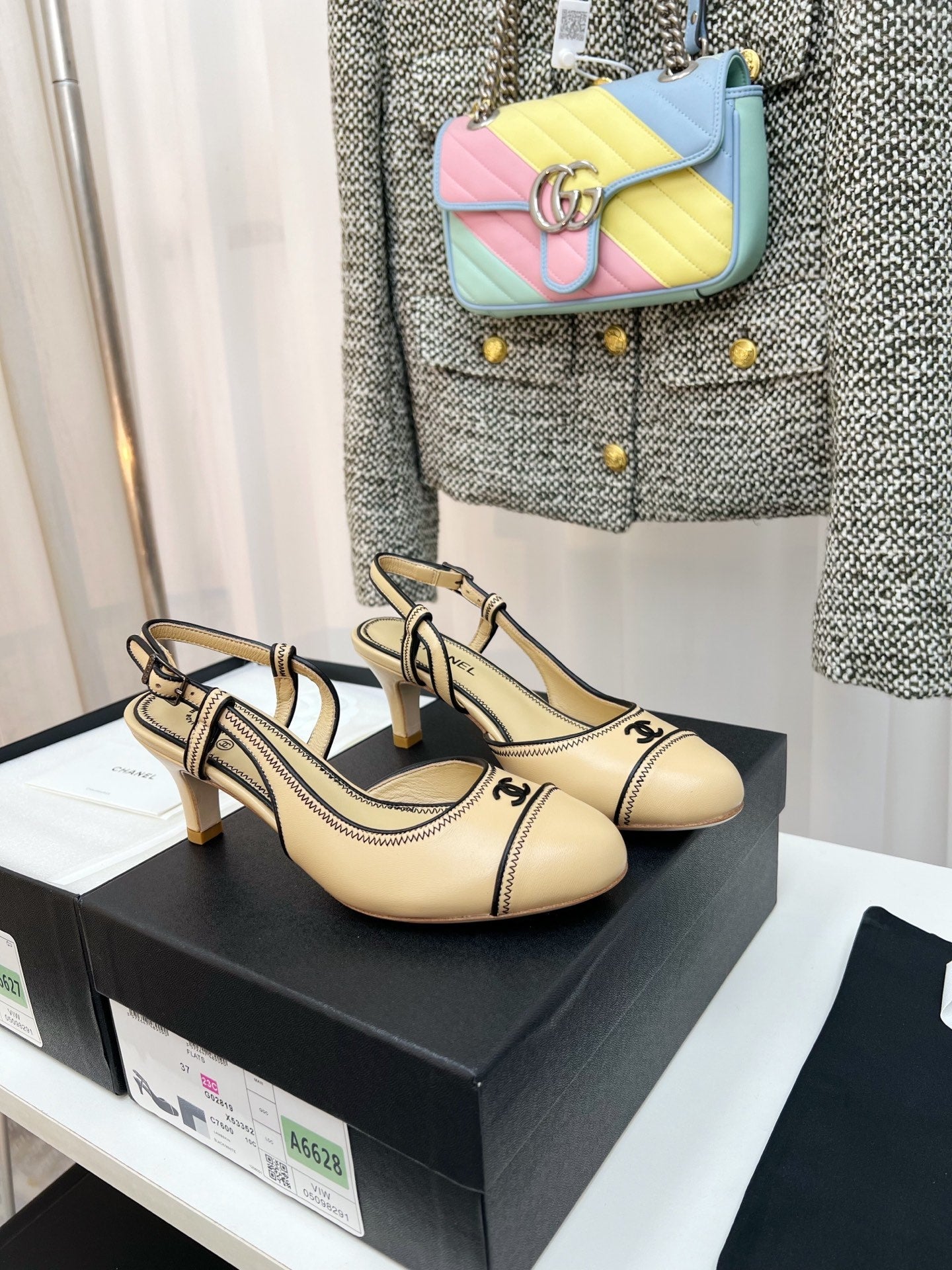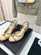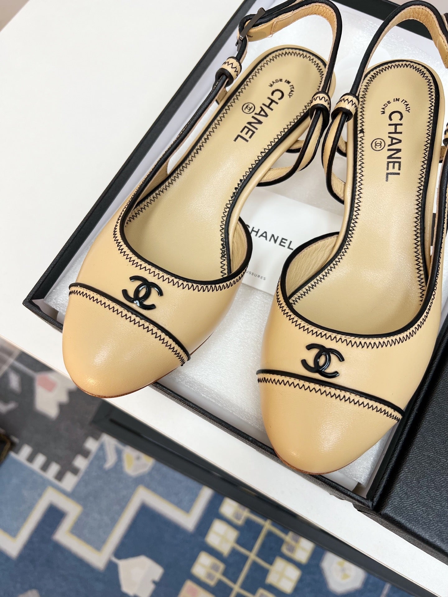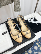 CC Slingback Heels With Black Contrast Stitching Beige Lambskin 476711