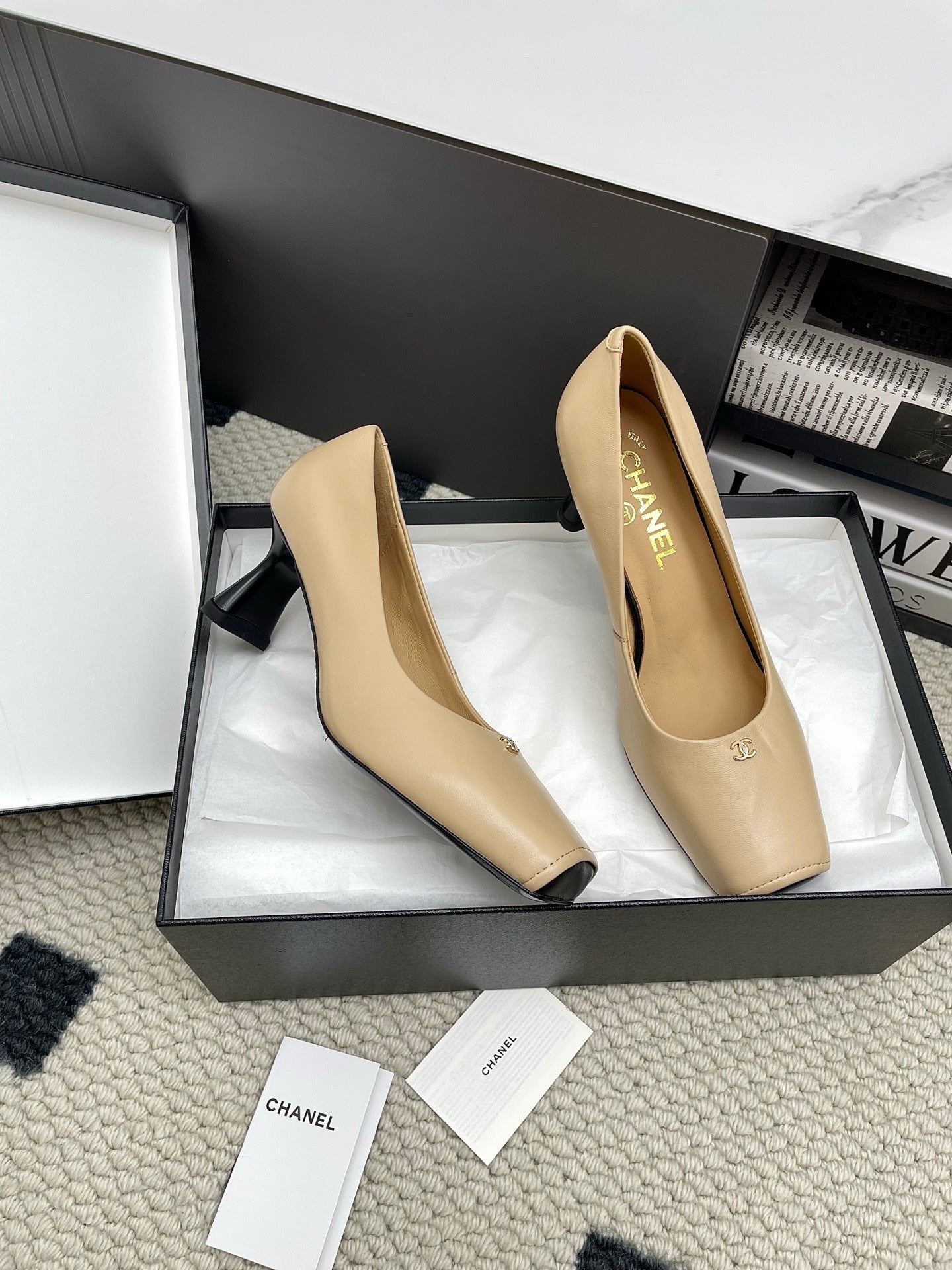 CC Square-Toe Pumps 65mm Beige Sheepskin 427014