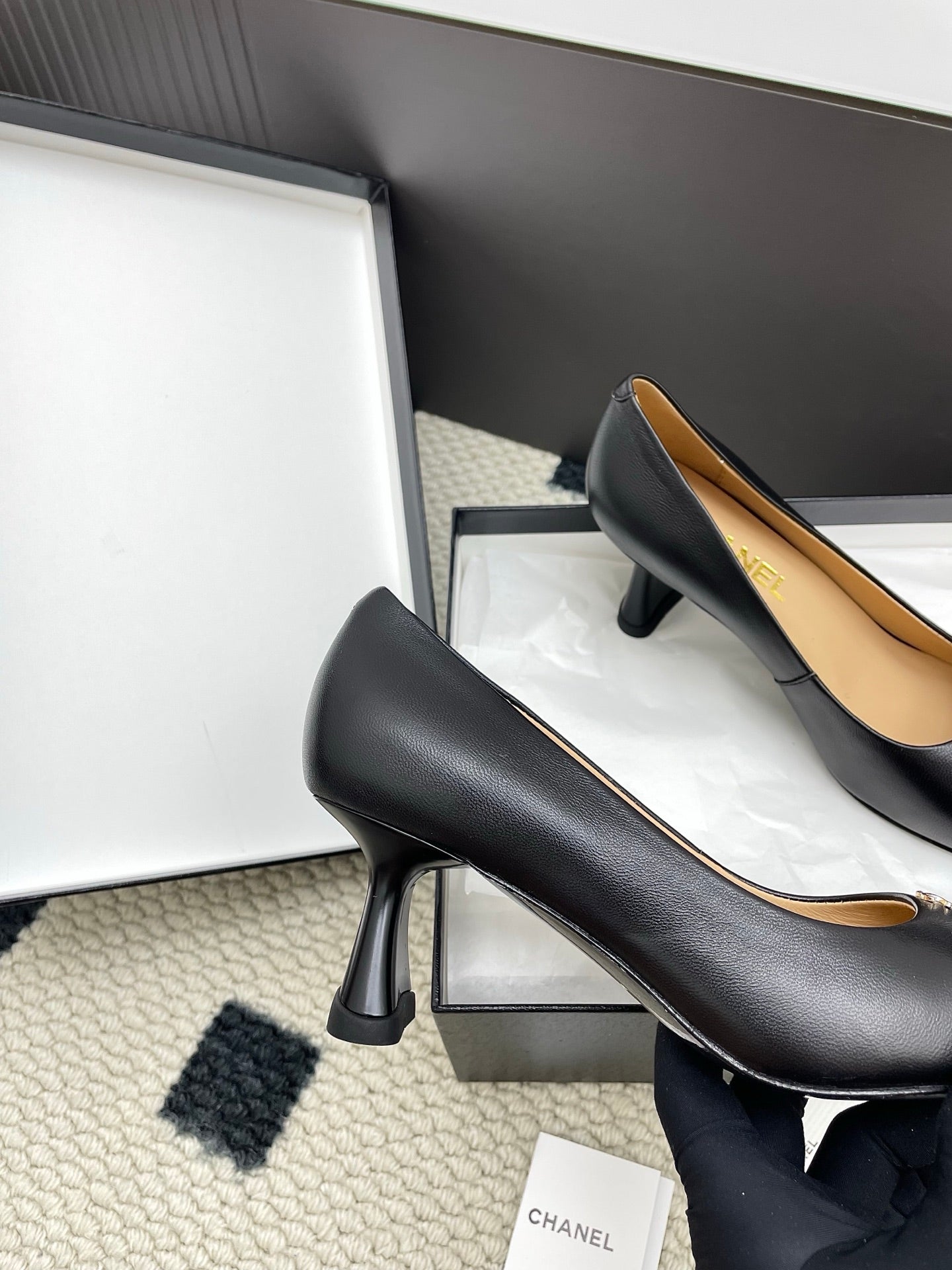 CC Square-Toe Pumps 65mm Black Sheepskin 427015