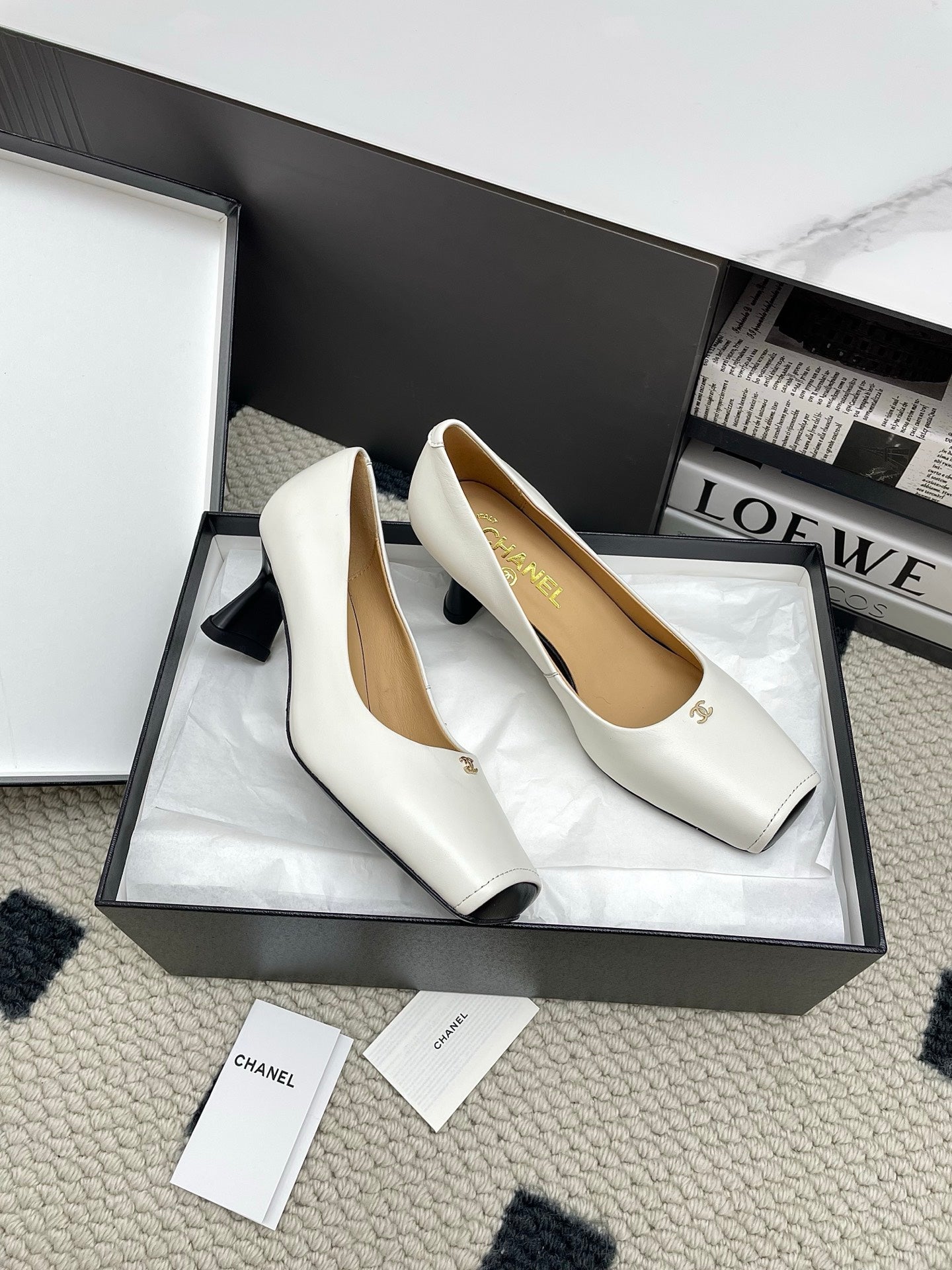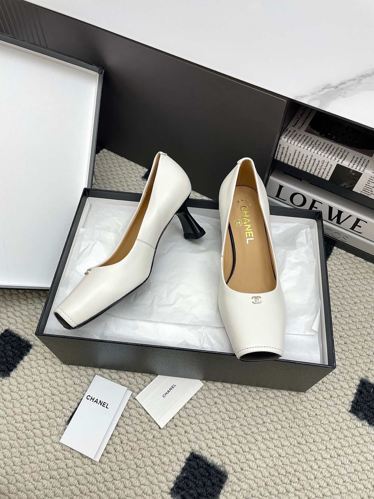 CC Square-Toe Pumps 65mm White Sheepskin 427016