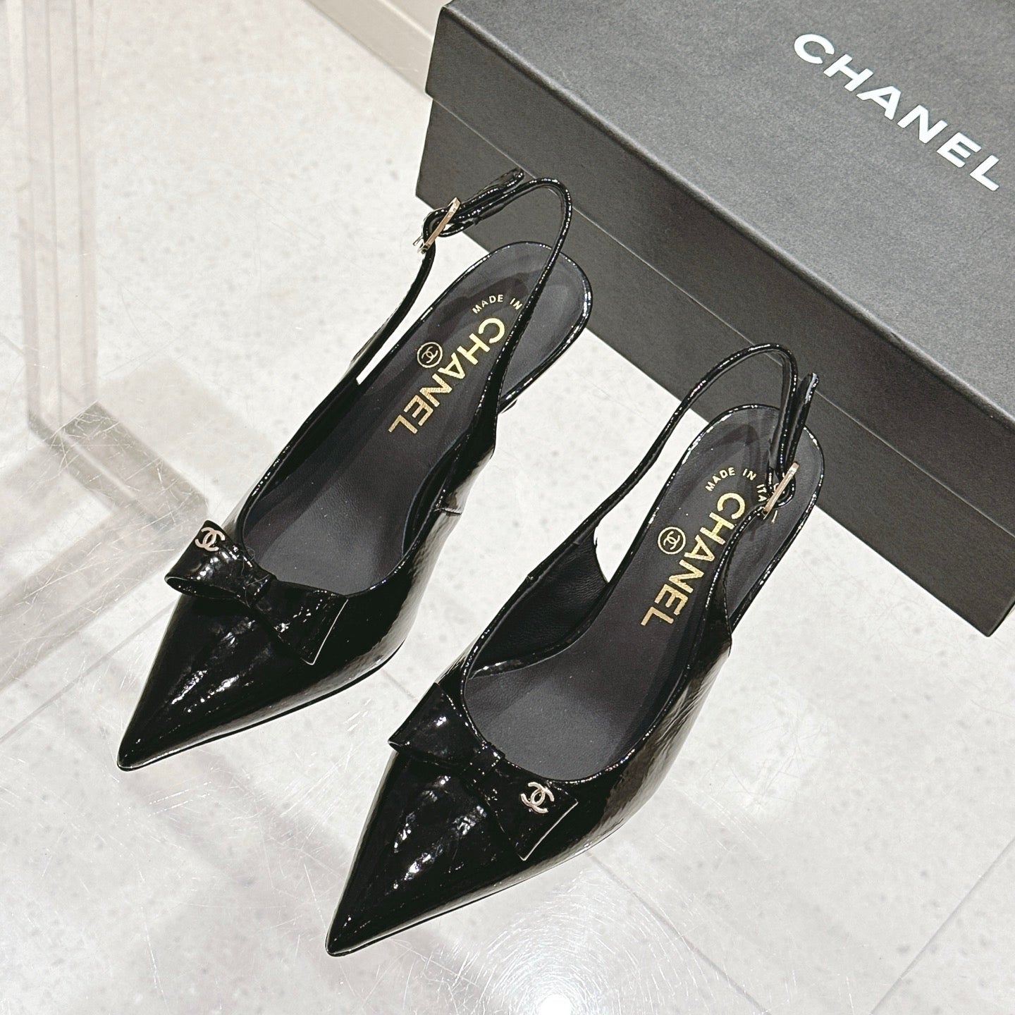 Chanel 25A Slingback Black Patent Calfskin 393073