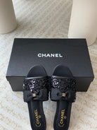 mule sandal black calfskin glitter sequin