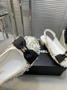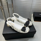 slingbacks flat white bowl silk diamond buckle