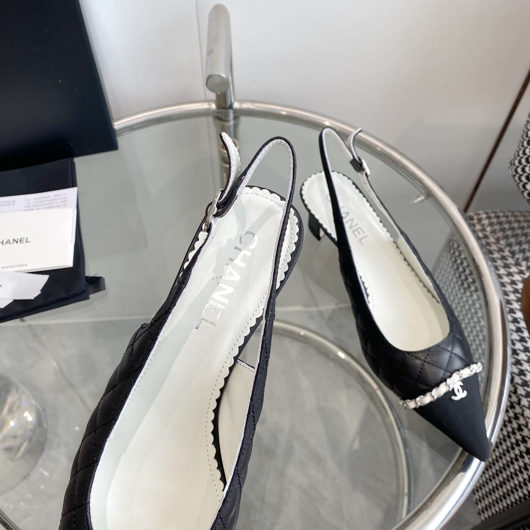 slingbacks pumps 45 black quilted calfskin grosgrain