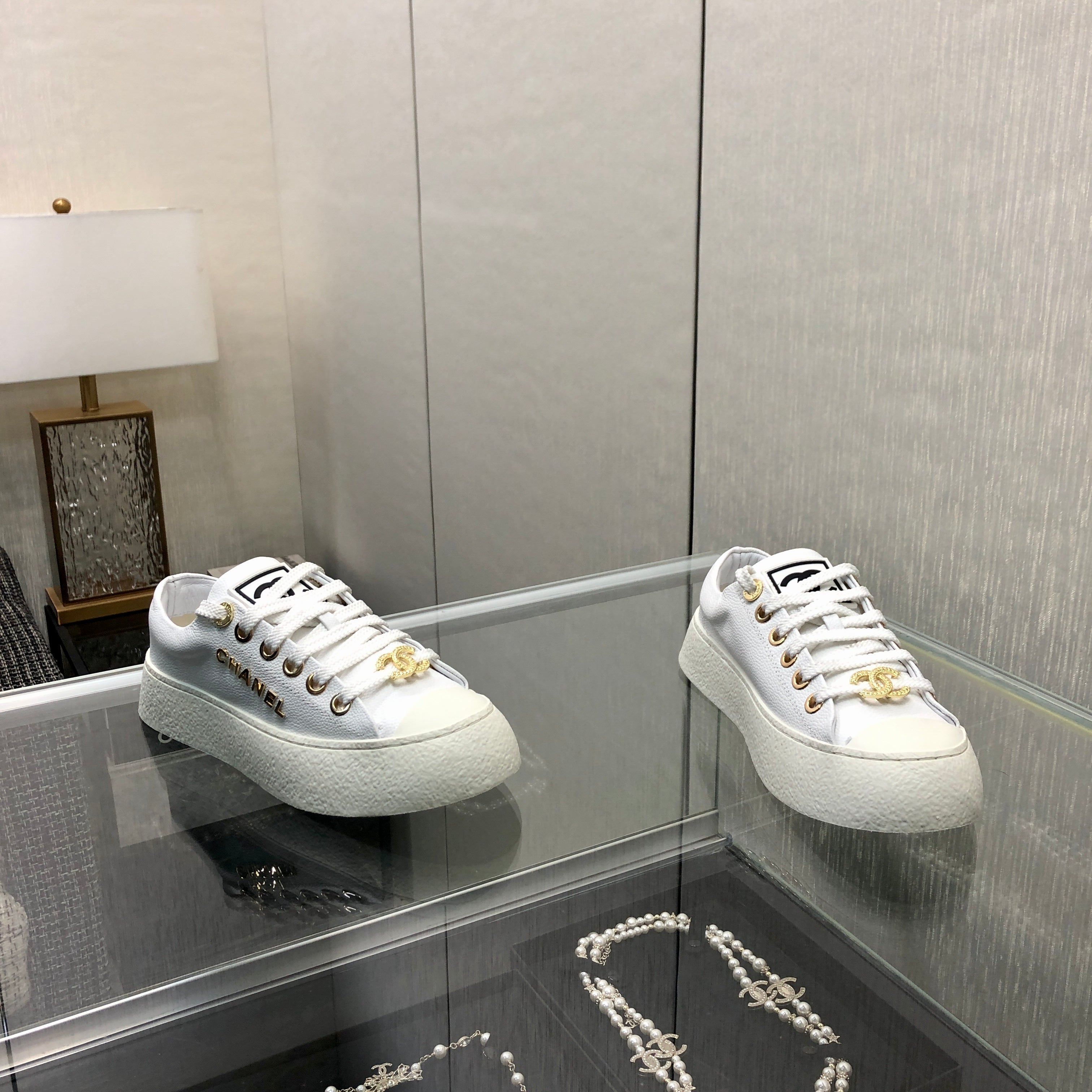 CASUAL SNEAKER IN WHITE LAMBSKIN WITH GOLD LOGO